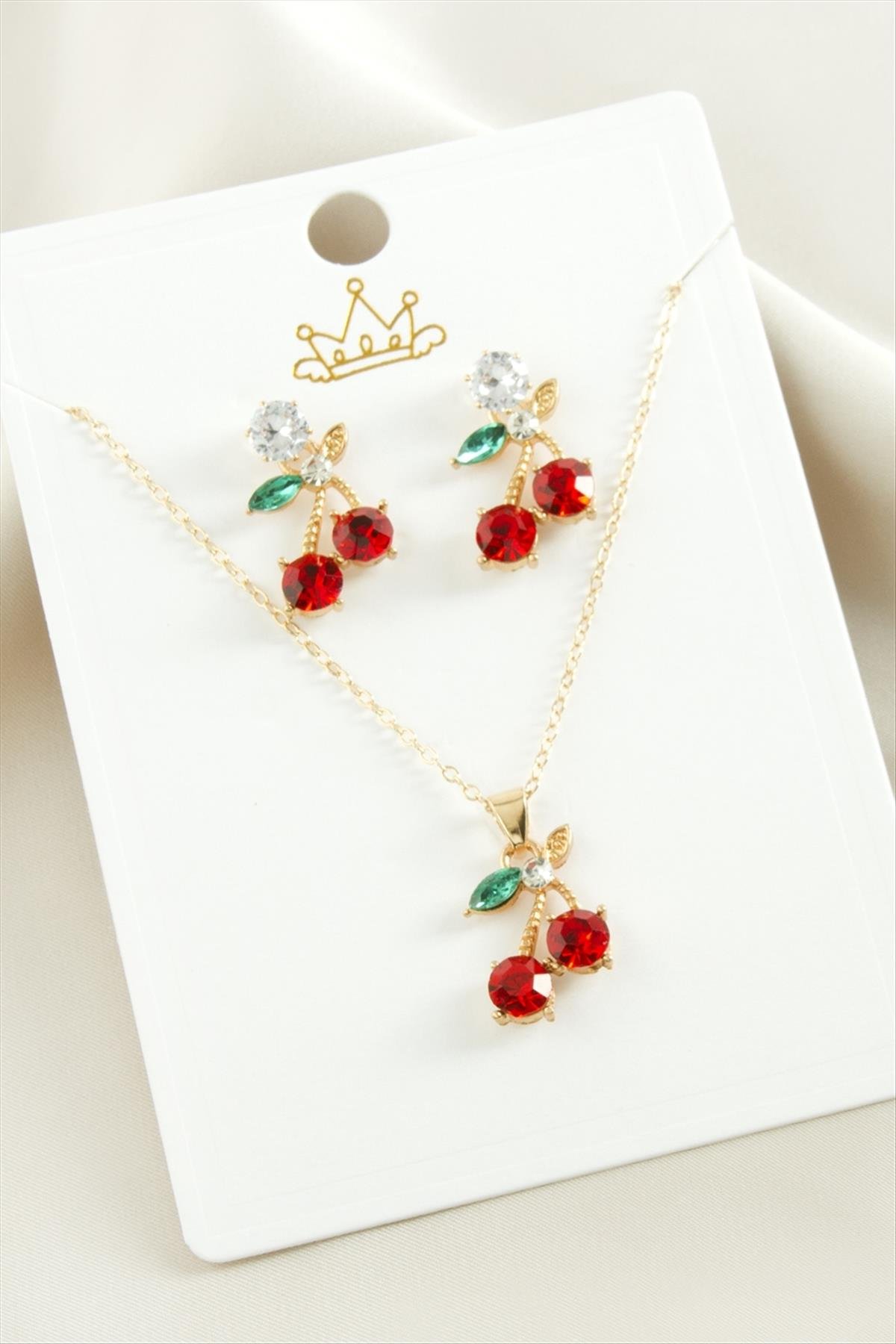 Kiraz Zirkon Taşlı Set Kolye