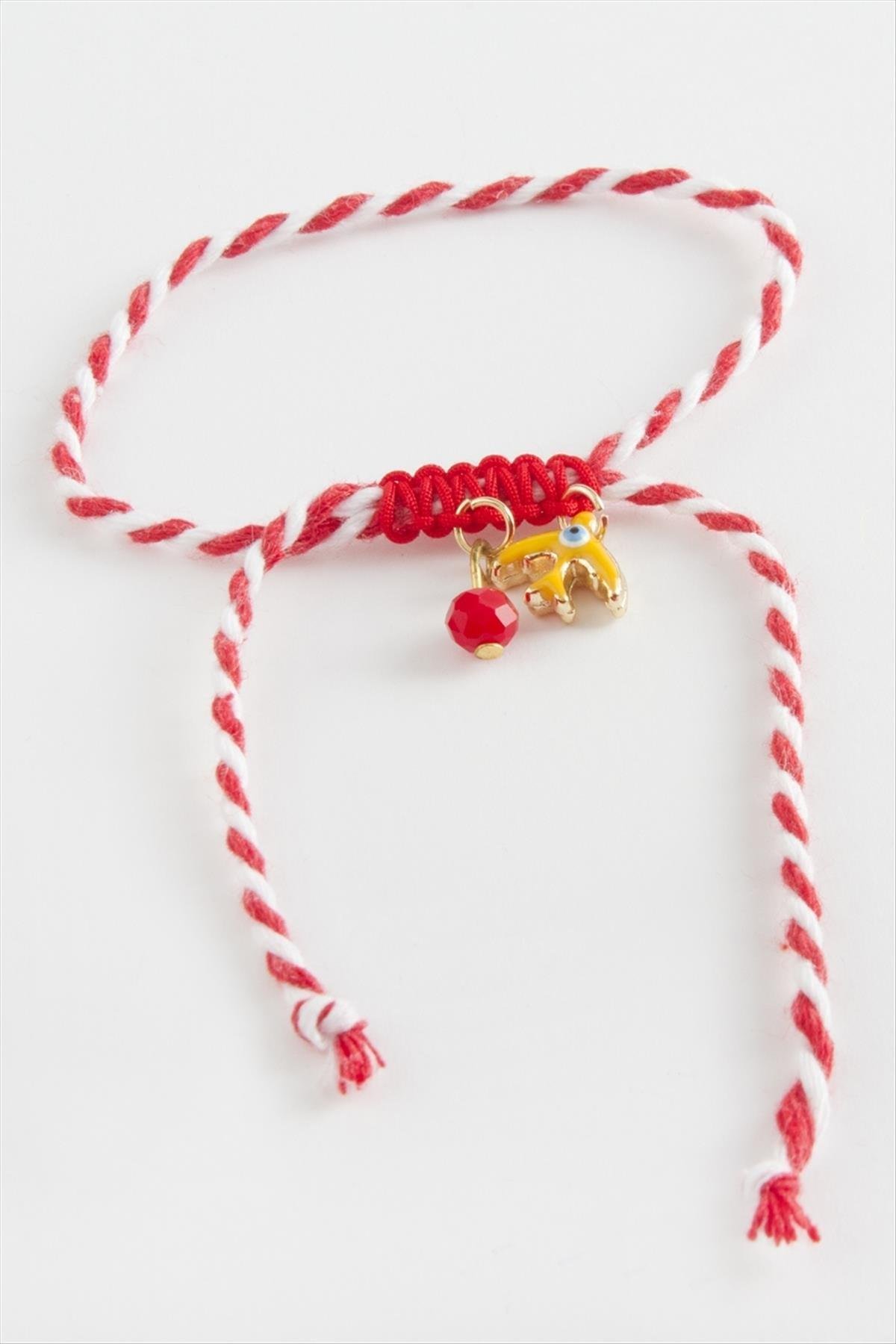 Kırlangıç Kristal Marteniçka Makrome İp Bileklik-Kırmızı