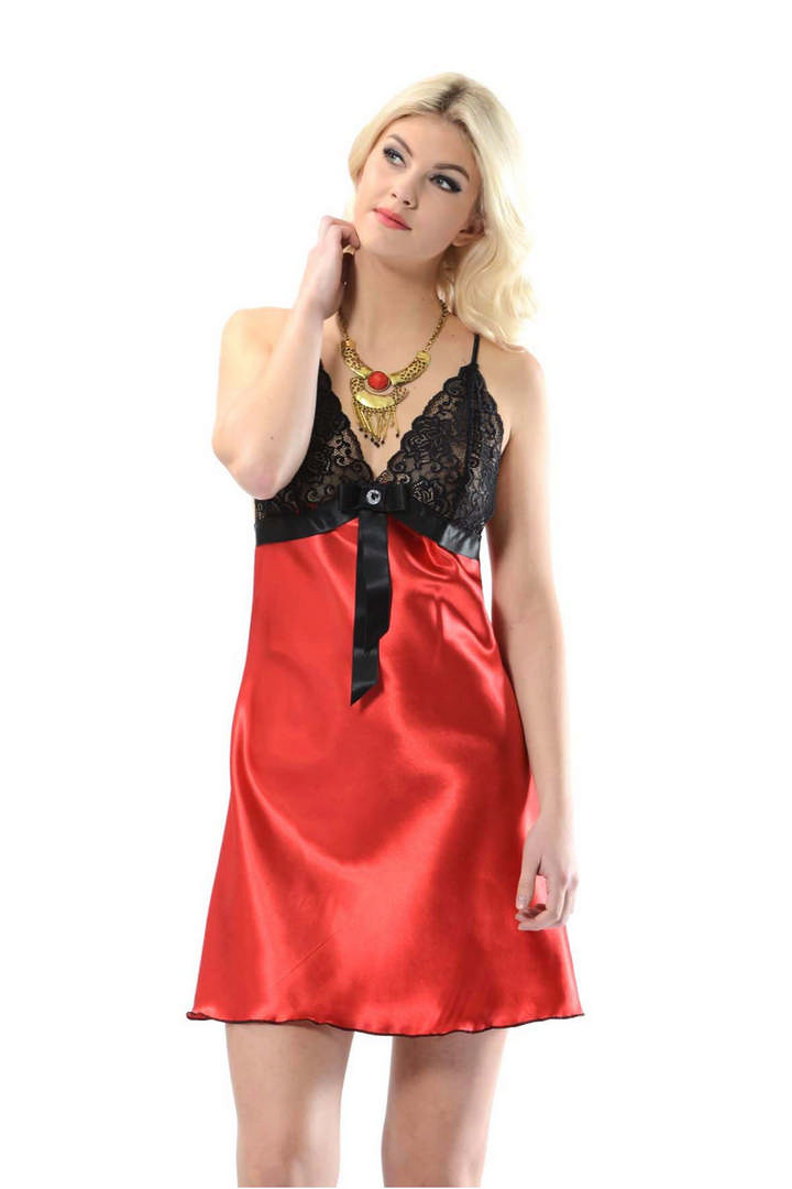 Kırmızı Dantelli Saten Gecelik – M-383 – Beden L/XL
