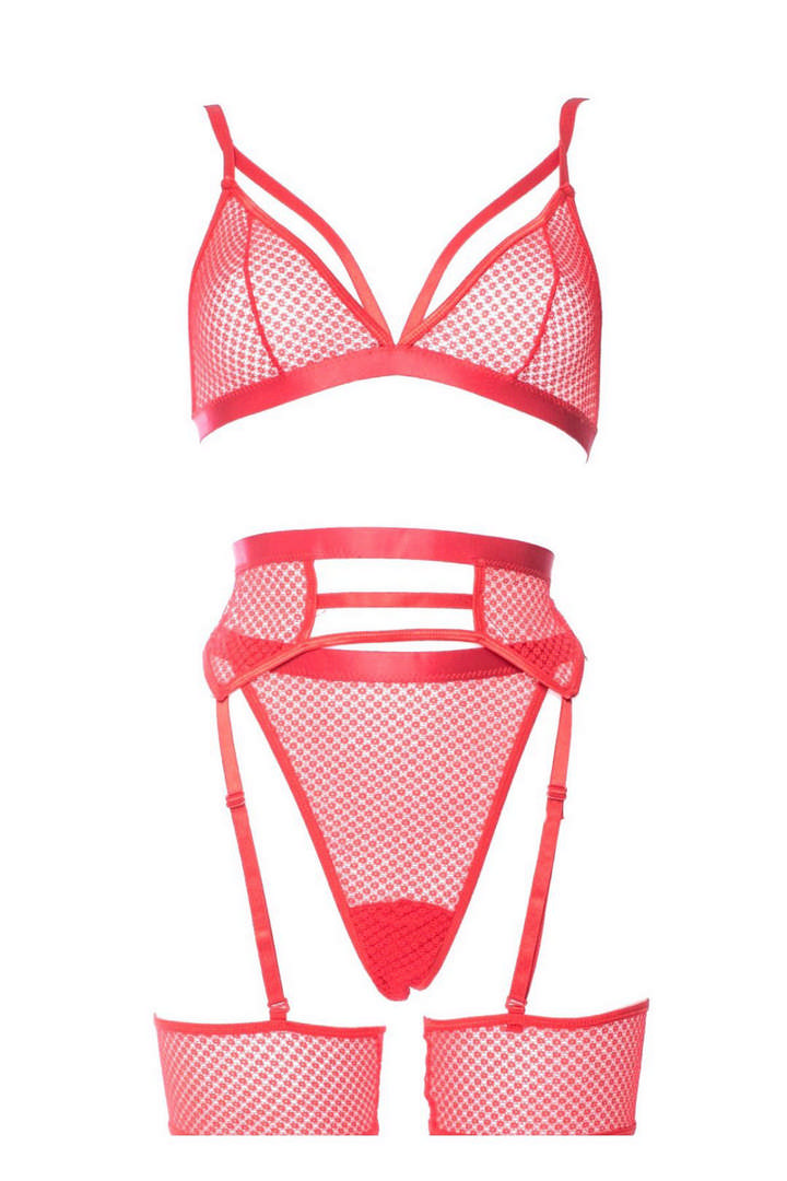 Kırmızı Fantezi File Jartiyer Takım – 1036 – Beden L/XL
