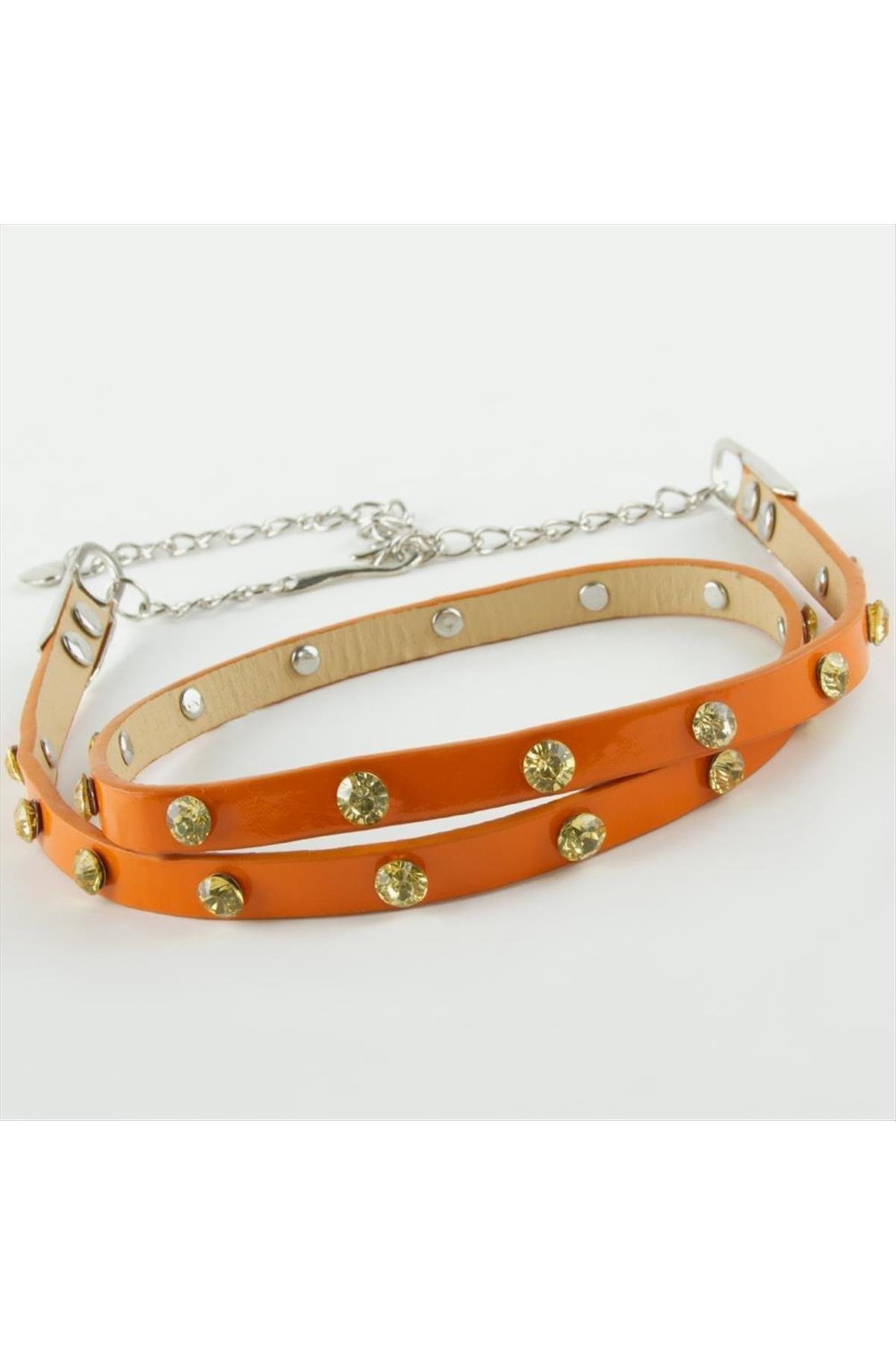 Klasik Deri Taşlı Kemer-Turuncu