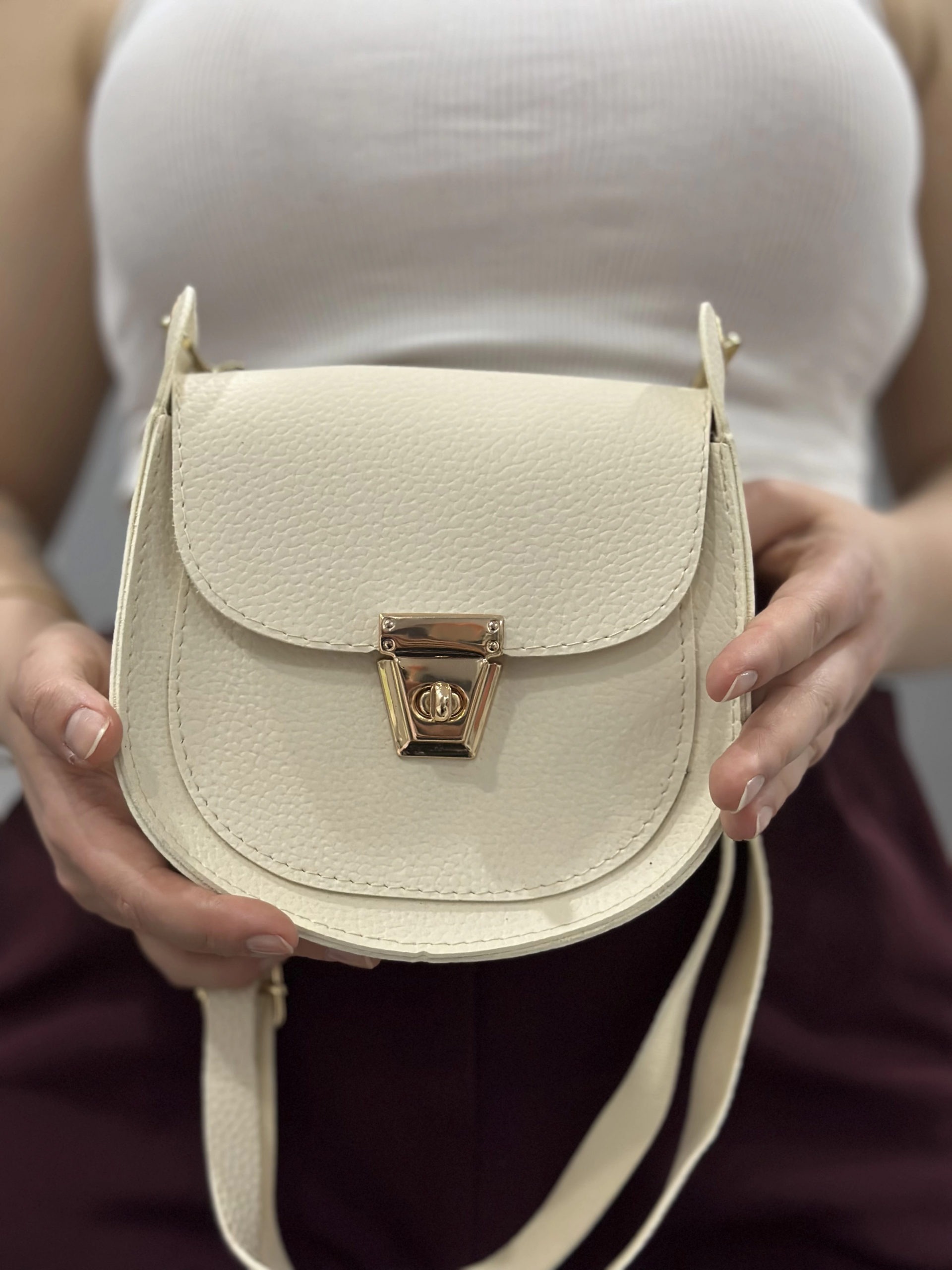 Klasik kapaklı bej cilt çanta (Beden: STANDART)
