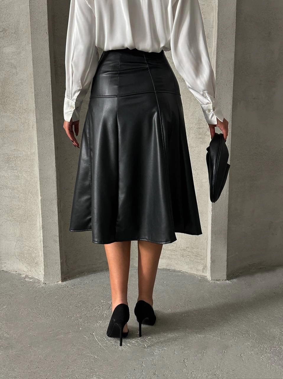 Komple parçalı deri etek siyah h26441 (Beden: S)
