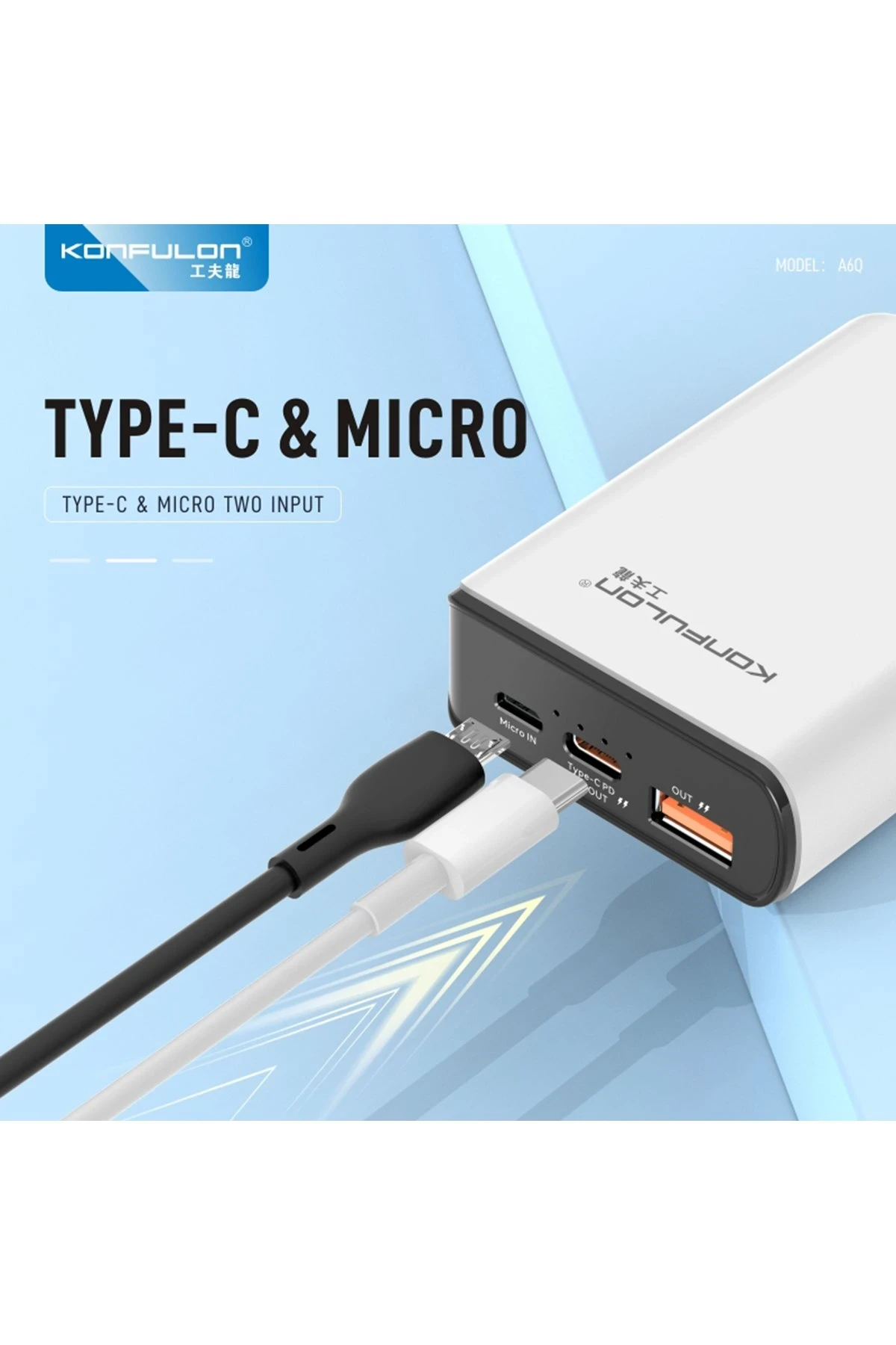 Konfulon A6Q 22.5W Usb 3.0 ve 20W Type-C Çıkışlı 10.000 mAh PD Powerbank – Siyah