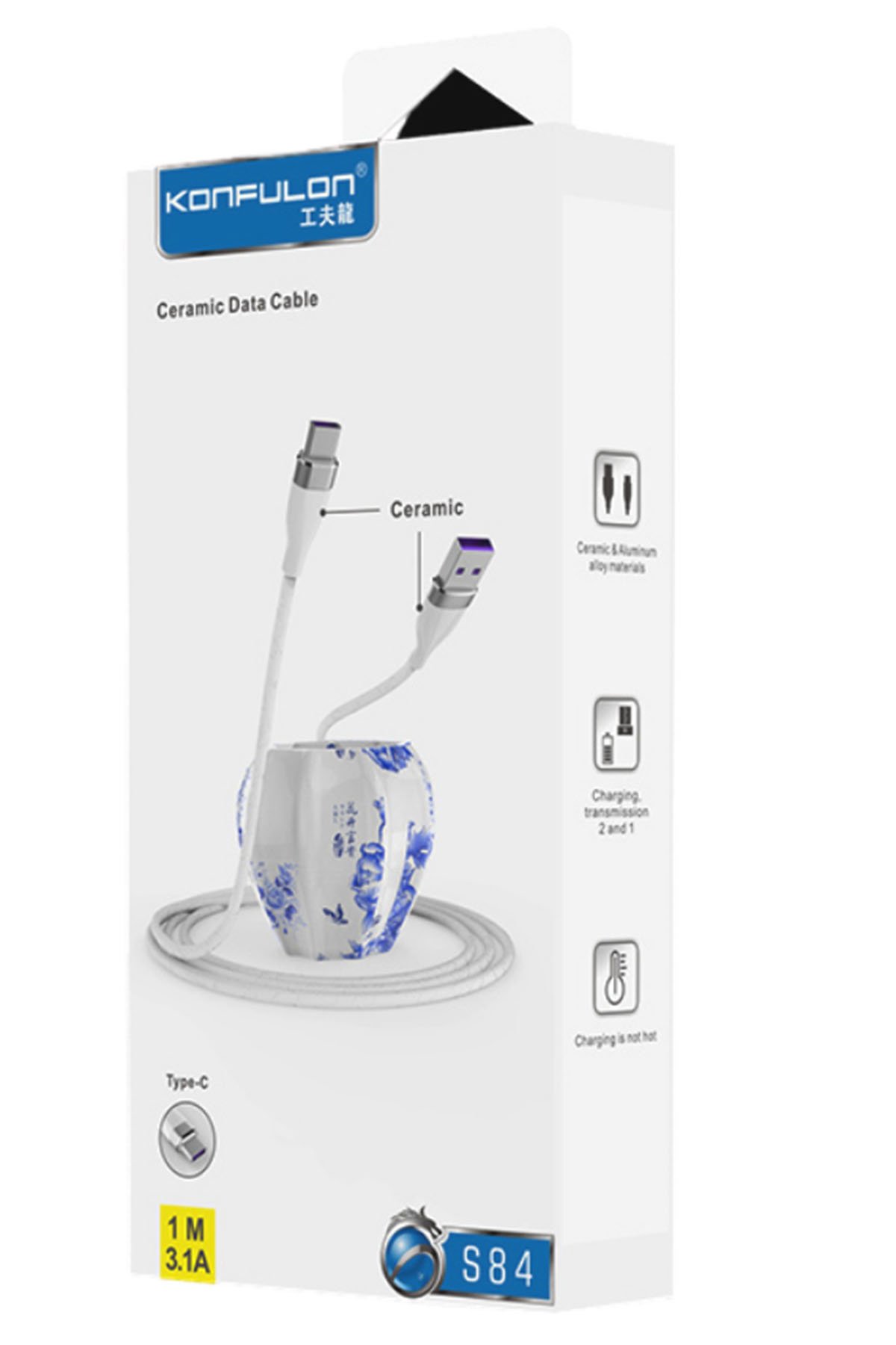 Konfulon S84 Seramik Uçlu Type-C 1M 3.1A – Beyaz