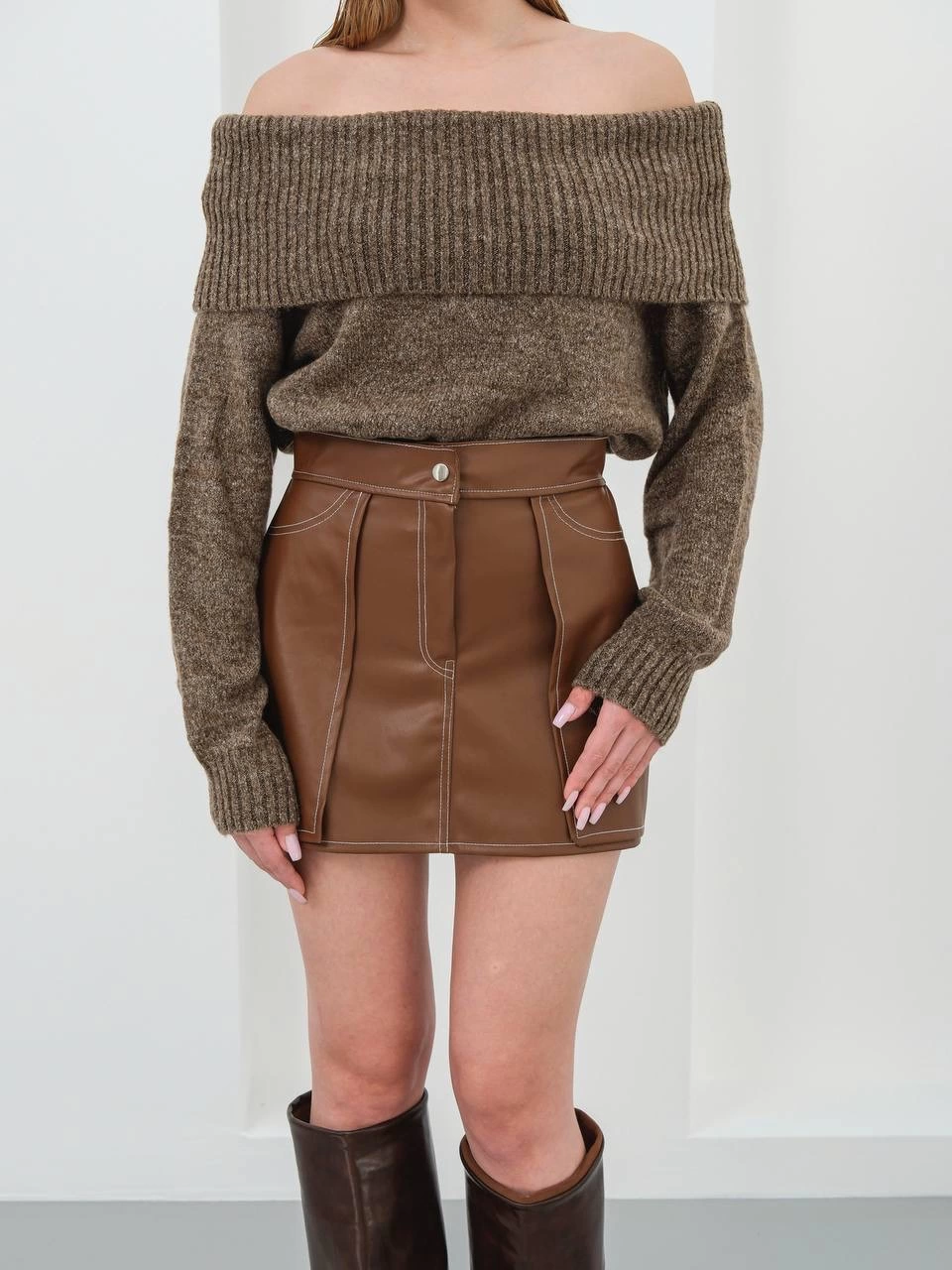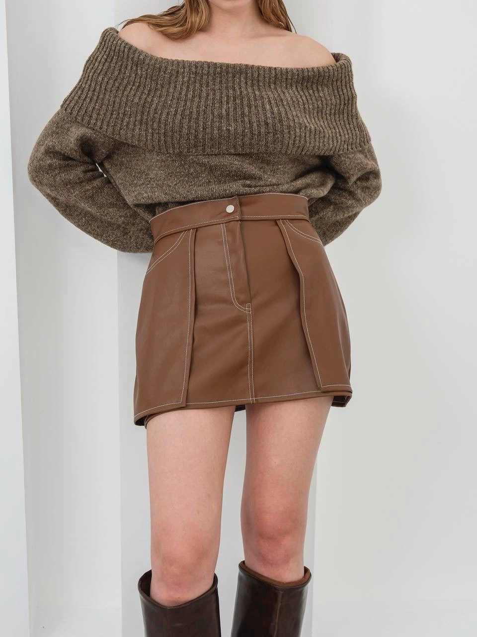 Şıklığı ve rahatlığı bir arada sunan Kontrast deri etek, gardırobunuzun vazgeçilmez parçası olmaya aday!