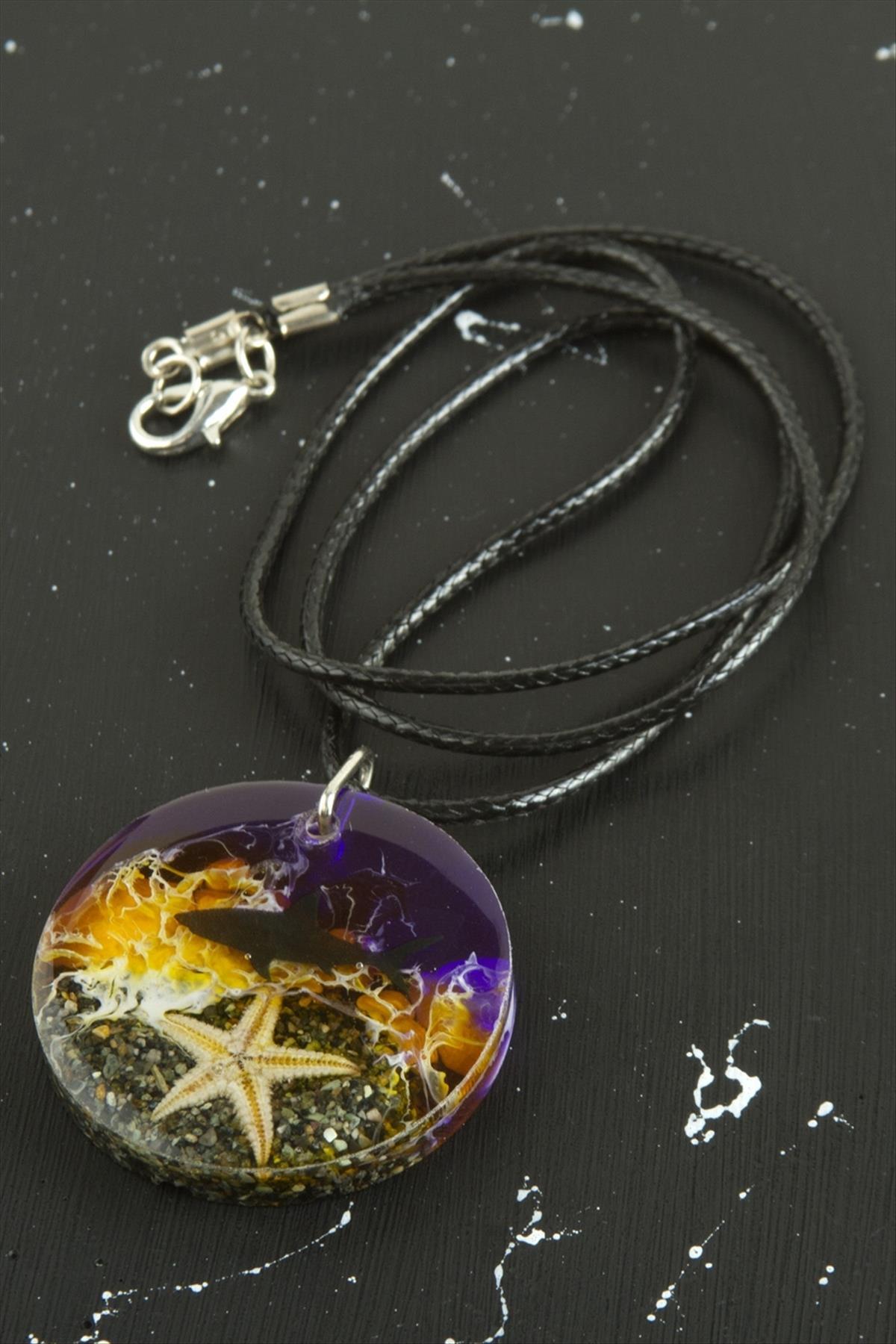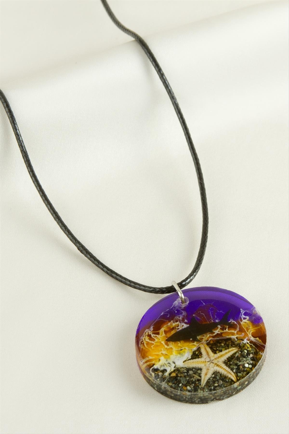 Köpek Balığı Deniz Efektli Epoksi Kolye-Mor