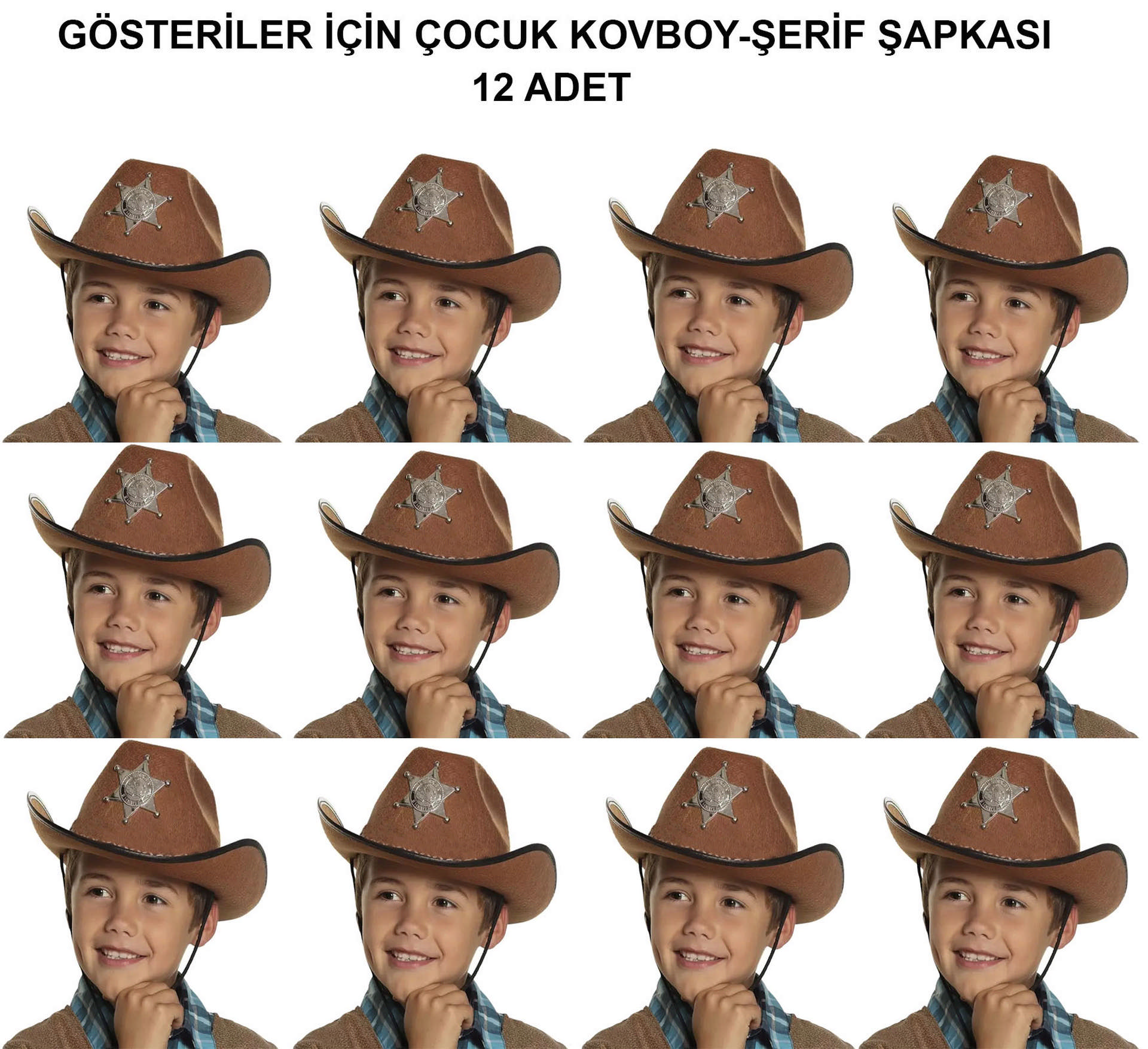Çocuk Kovboy Şerif Şapkası 12’li Set – Kostüm ve Gösteri Aksesuarı