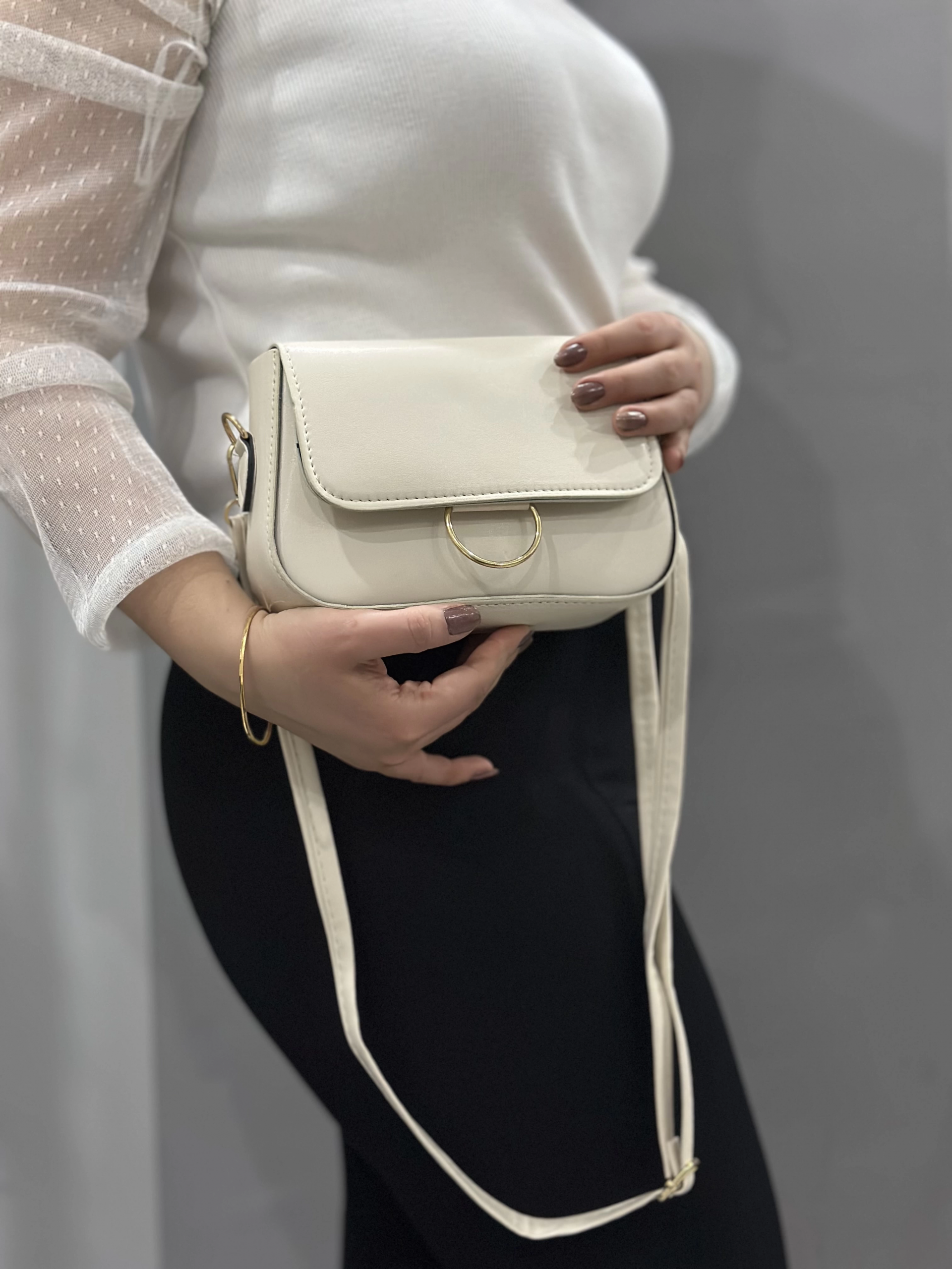 Bej cilt mossi çanta şıklığı ve kullanışlılığı bir arada sunar.