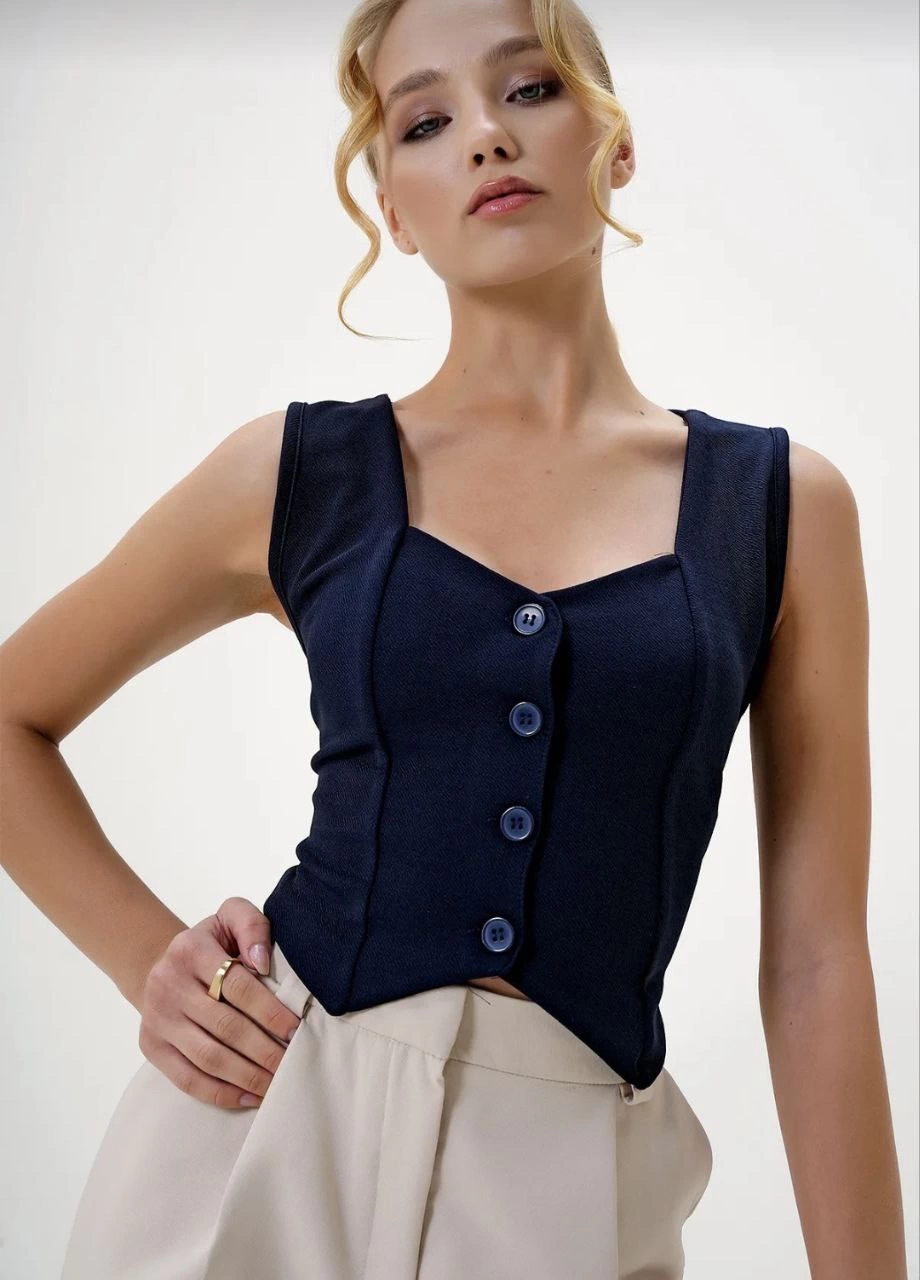 Krep kumaş düğmeli yelek lacivert s3395 (Beden: XL)