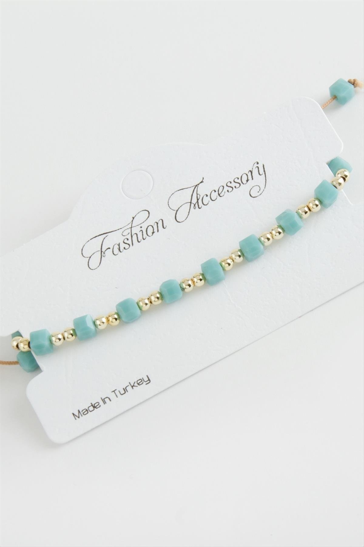 Küp Top Metal Kristal Bileklik-Turkuaz