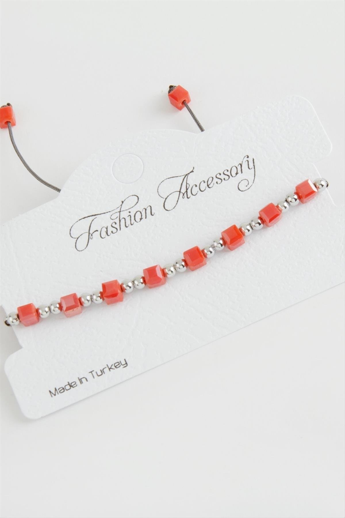 Bileklik; Ürün makrome ip üzerine dizilmiş metal ve kristal malzemeden üretilmiştir. Arkası asansörlüdür. Bileğe göre ayarlanabilir. Kartlıdır. Renkleri ve şık tasarımlarıyla satışa sunulmuştur.