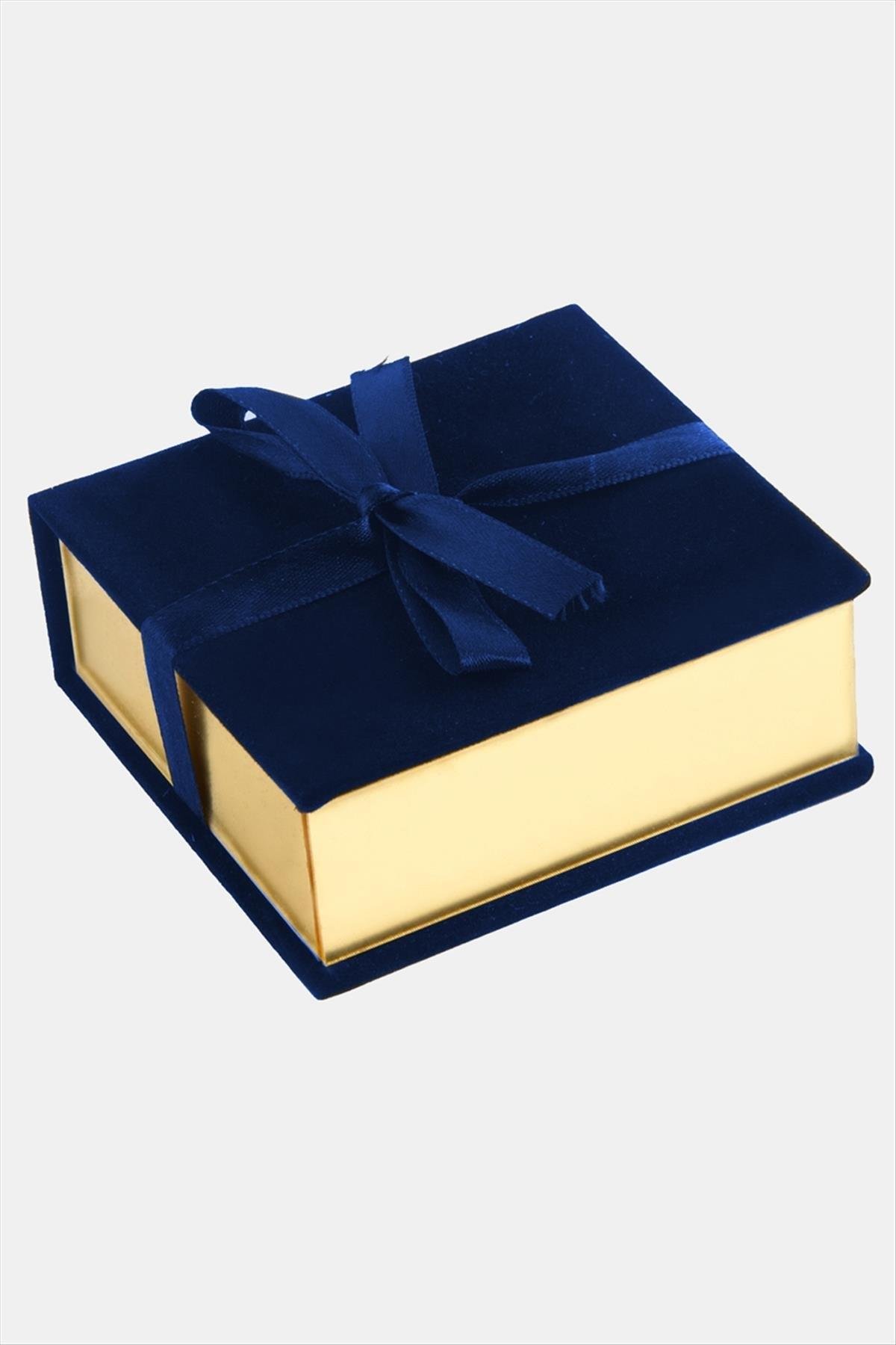 Kurdale Kadife Ahşap Lüx Set Kolye Kutusu-Lacivert