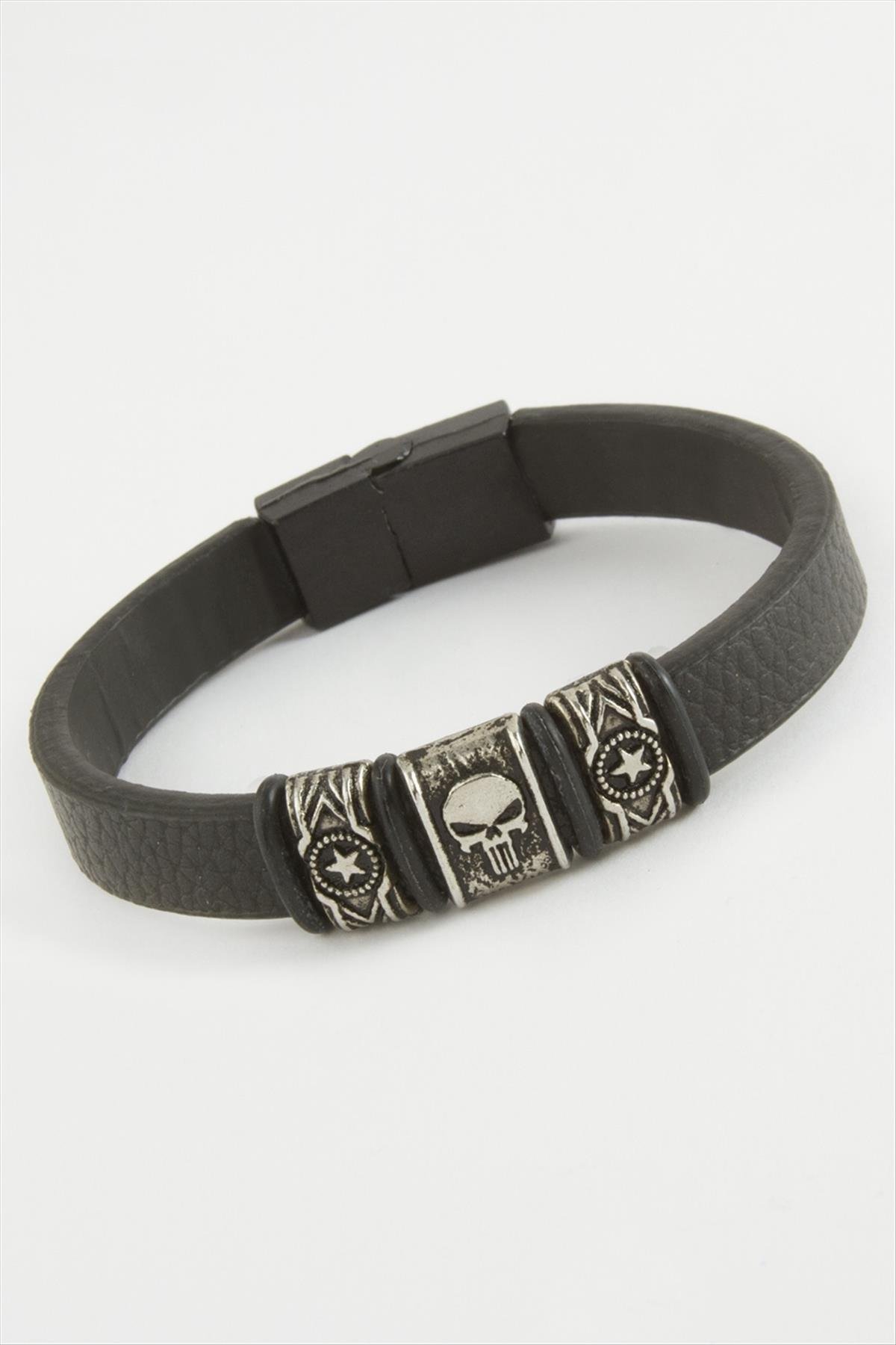 Kuru Kafa Kaliteli Mıknatıslı Suni Deri Bileklik-Siyah