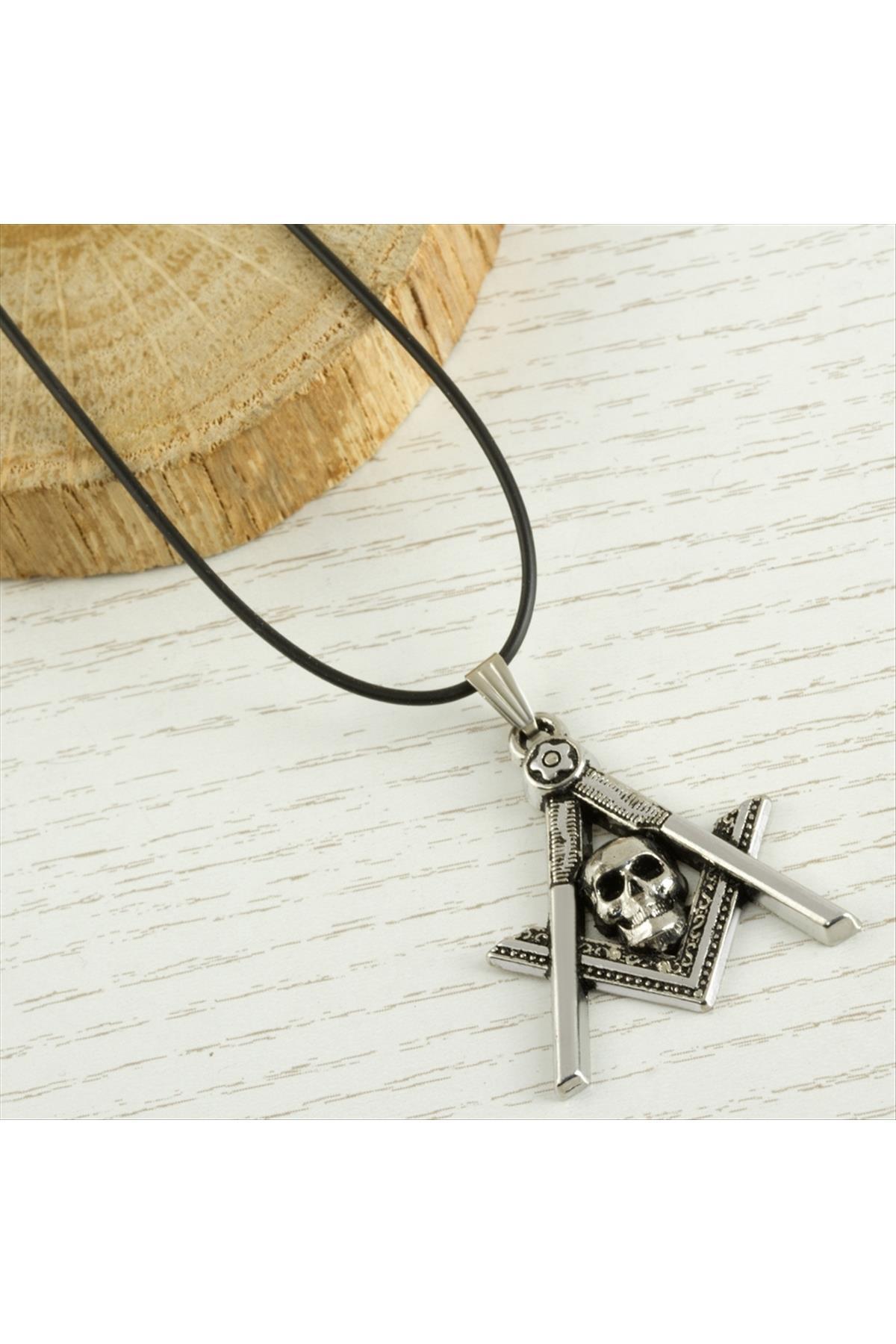 Kuru Kafa Metal Vinlex Deri Kolye-Gümüş Rengi