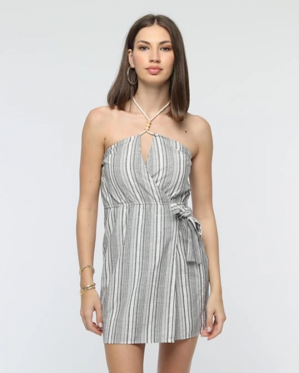 Şıklığı ve rahatlığı bir arada sunan Kuşaklı Çizgili Mini Keten Elbise, gardırobunuzun vazgeçilmez parçalarından biri olmaya aday!