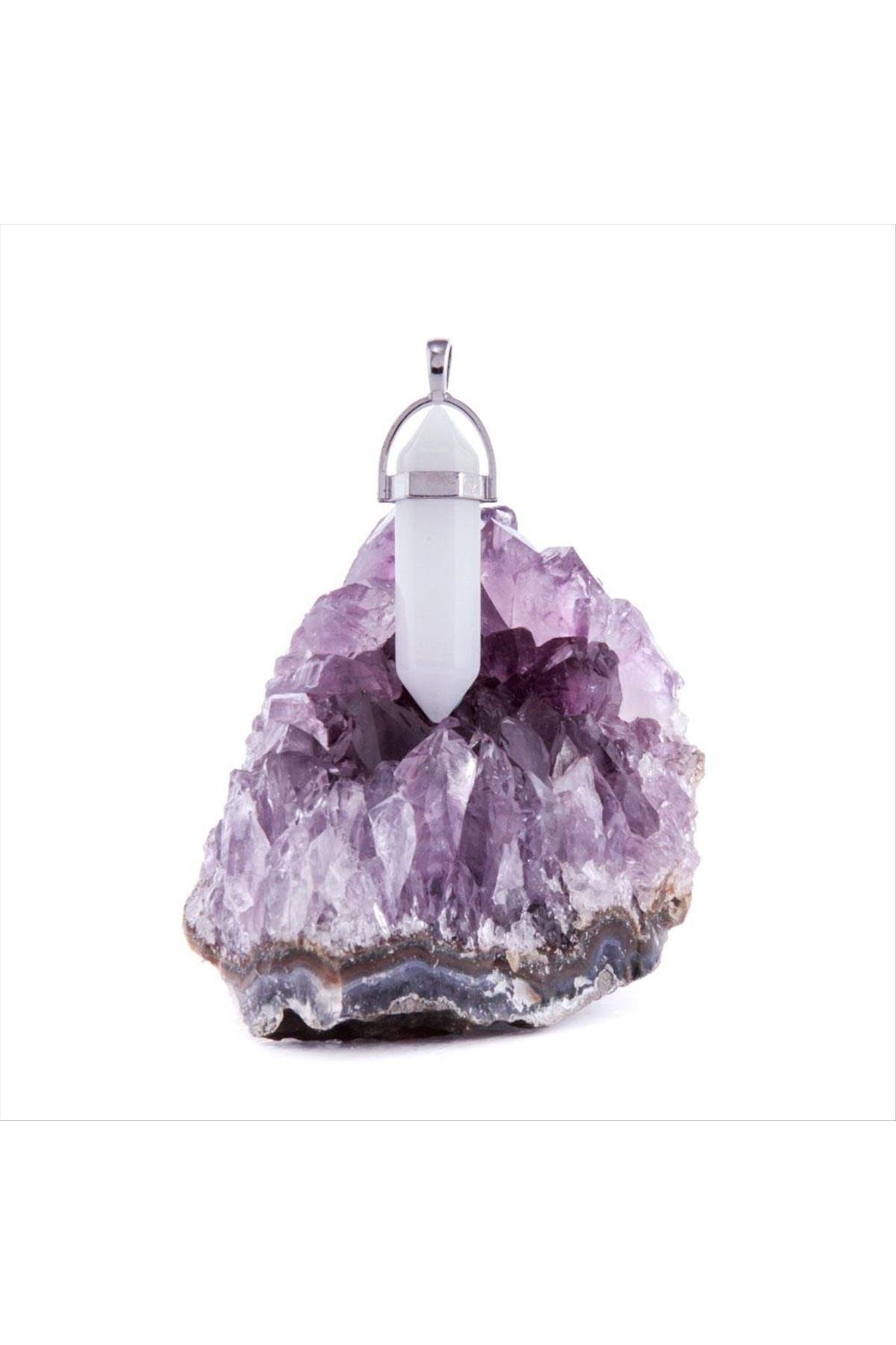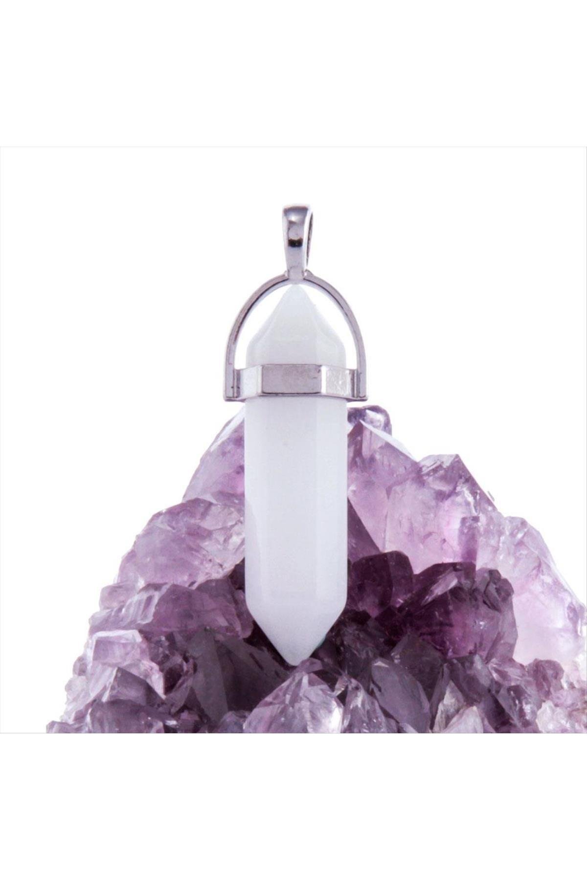 Kuvars Point Kolye Ucu-Beyaz