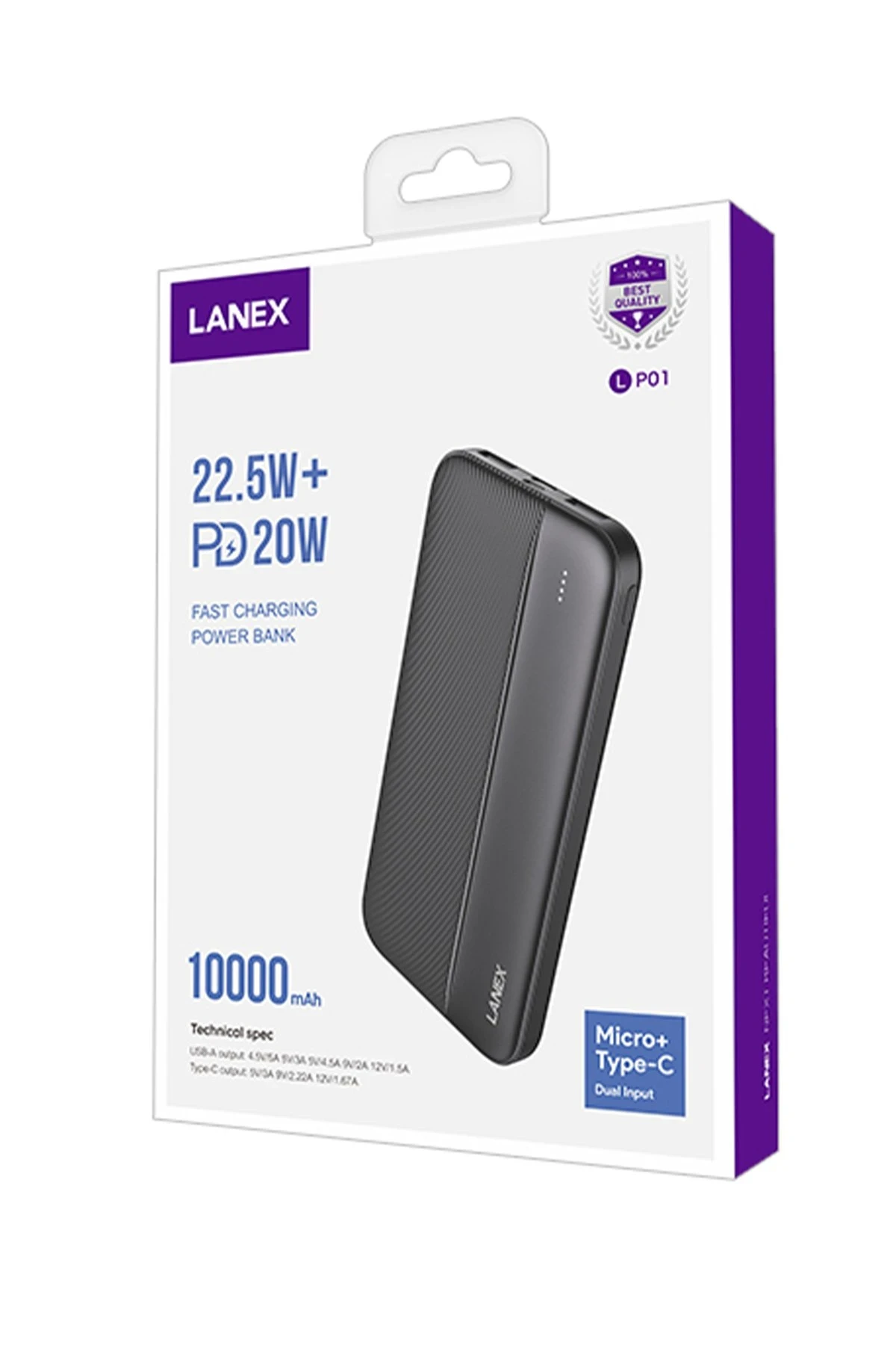 Lanex LP01 10.000 mAh 22.5W PD Hızlı Şarj Powerbank – Siyah