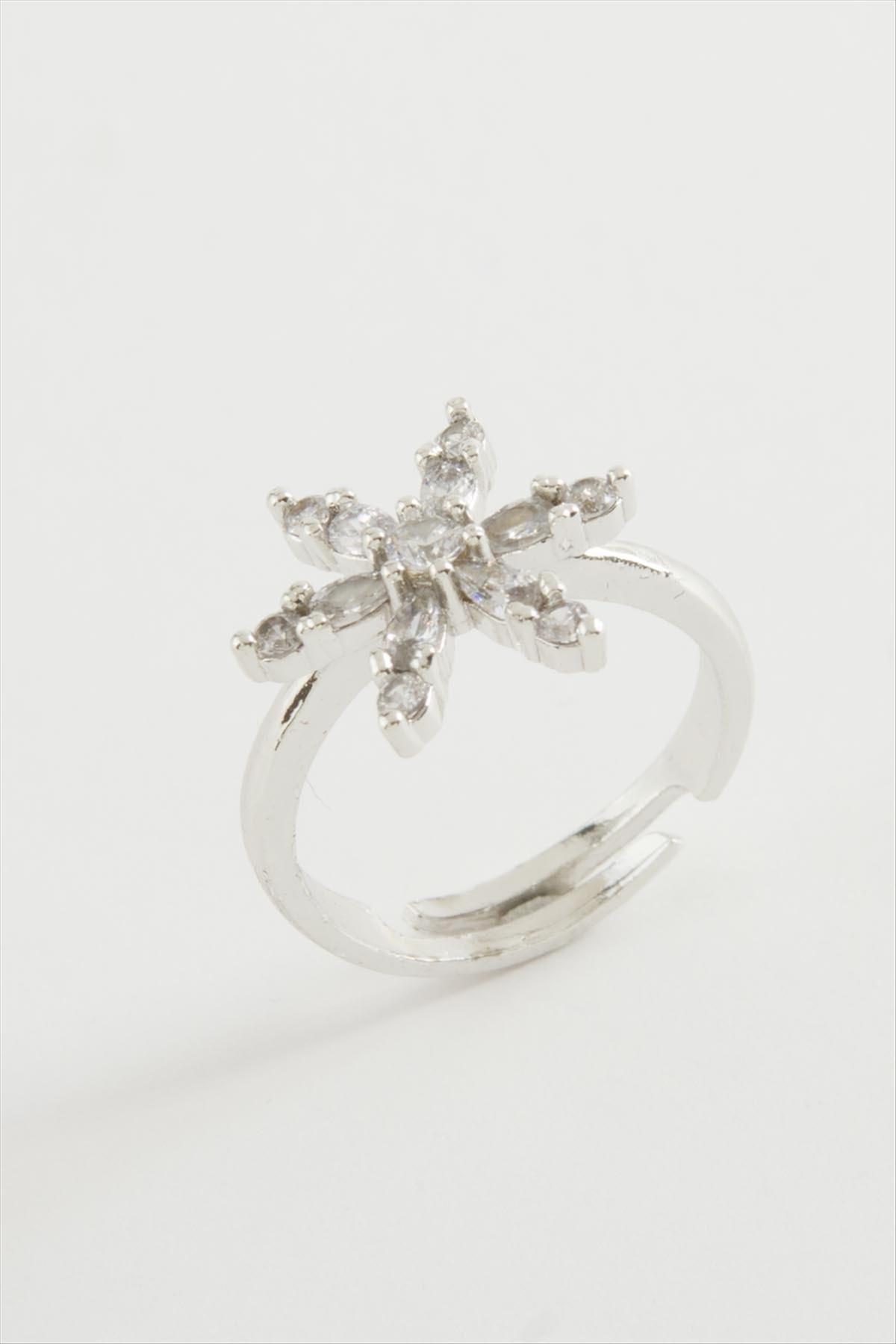 Lotus Zirkon Taşlı Yüzük-Gümüş Rengi