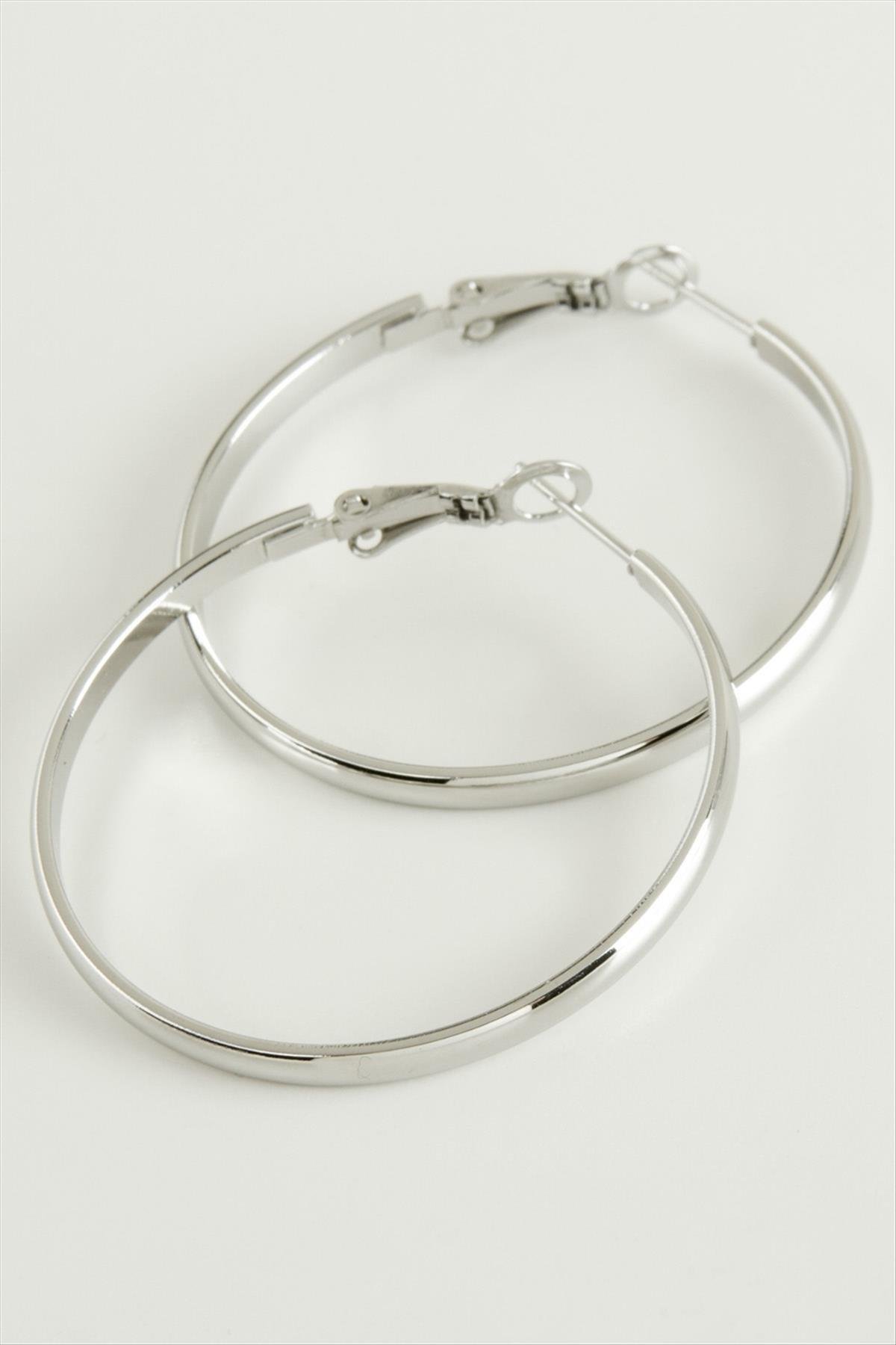 Lüks Çelik Halka Küpe 4,5 cm-Gümüş Rengi