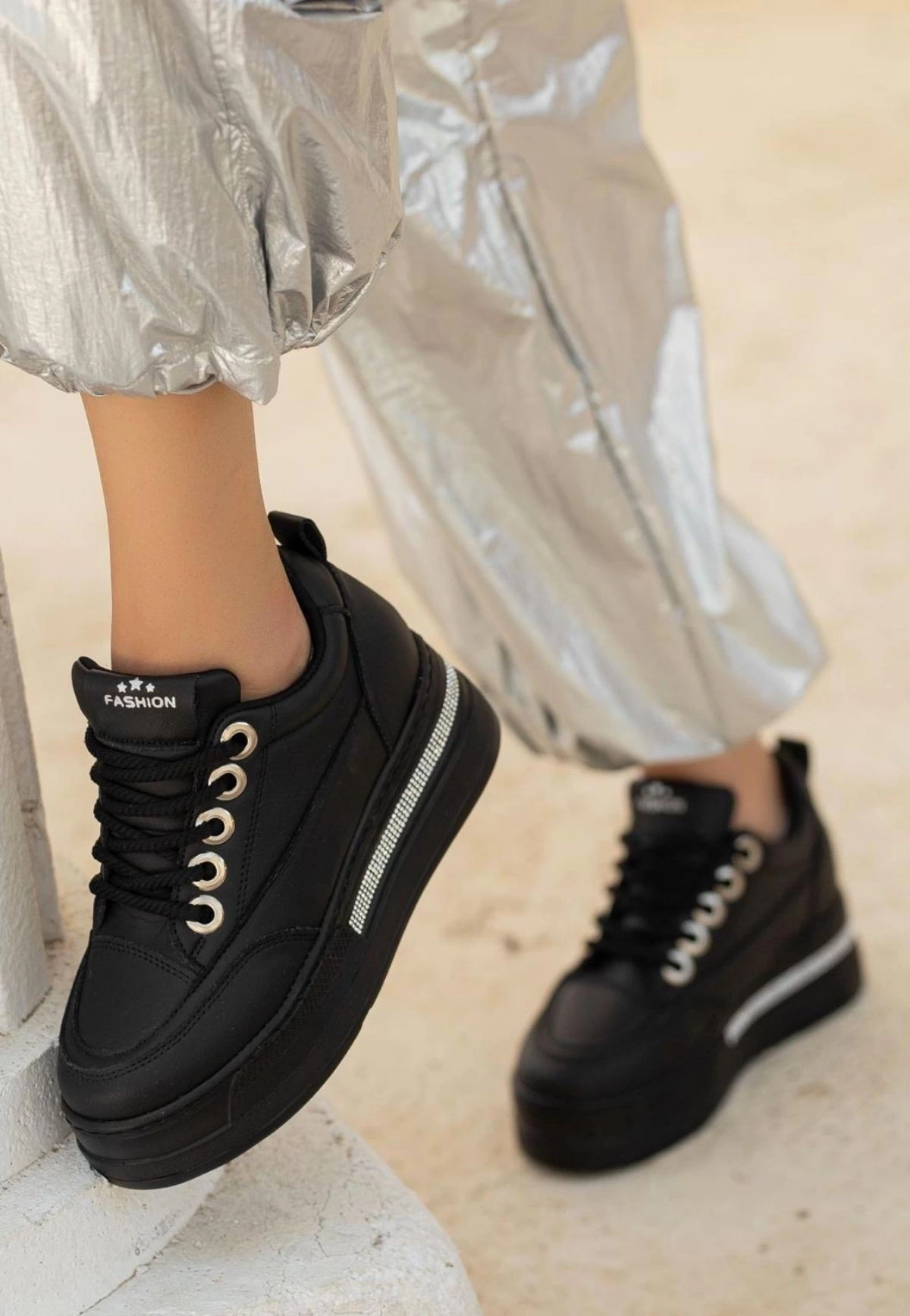 Lulu Siyah Cilt Bağcıklı Spor Ayakkabı (Numara: 37)