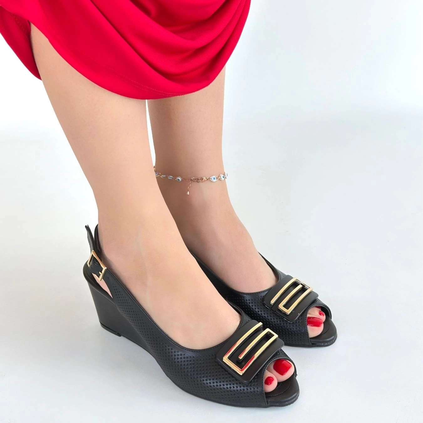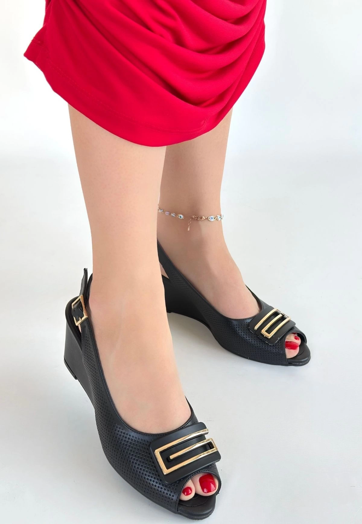 Mamba Siyah Cilt Dolgu Topuk Ayakkabı (Numara: 37)