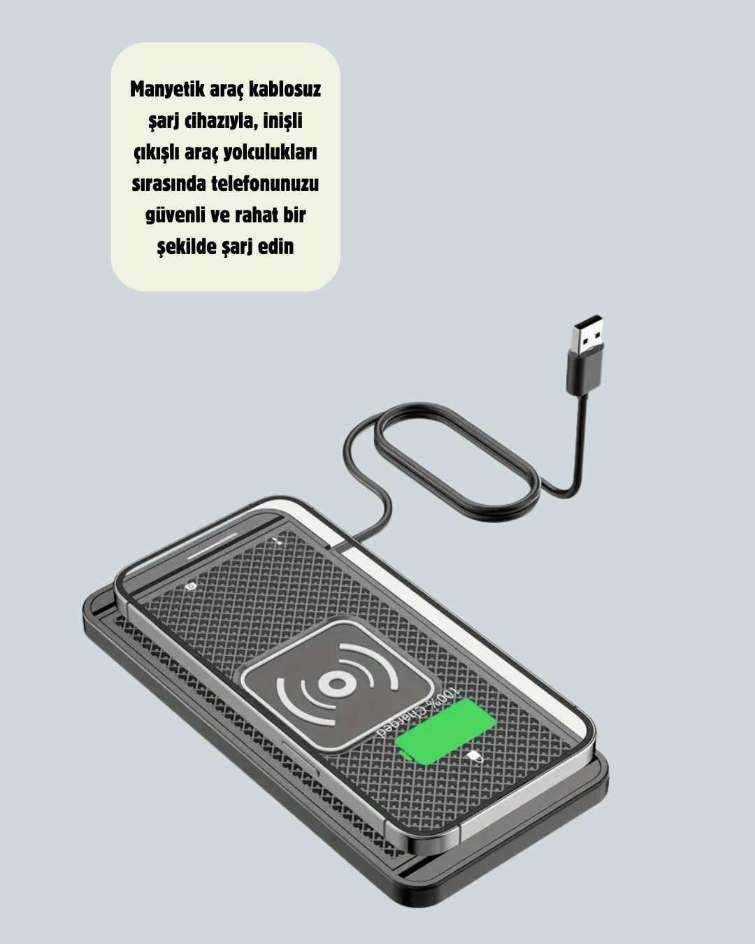 Manyetik Kablosuz Araç Şarj Cihazı – Hızlı Şarj, Kaymaz Taban, Güvenli Kullanım