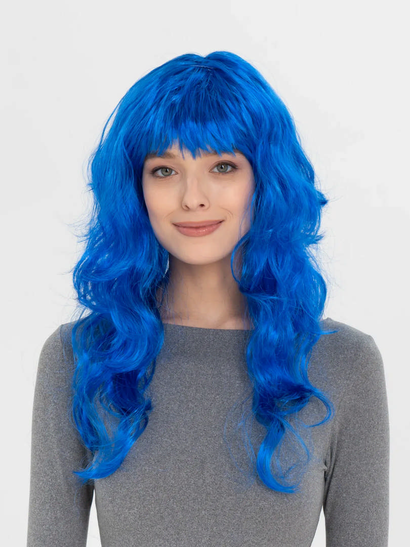 Mavi Renk Uzun Dalgalı Parti Peruğu