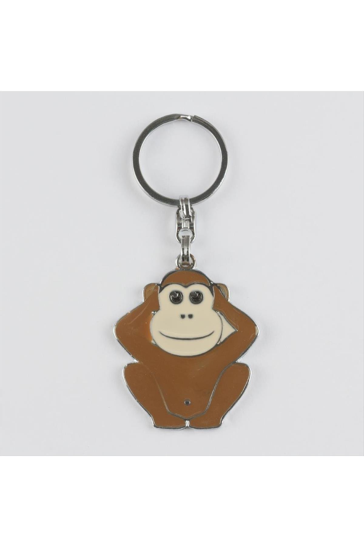 Maymun Figürlü Metal Anahtarlık-Gümüş Rengi