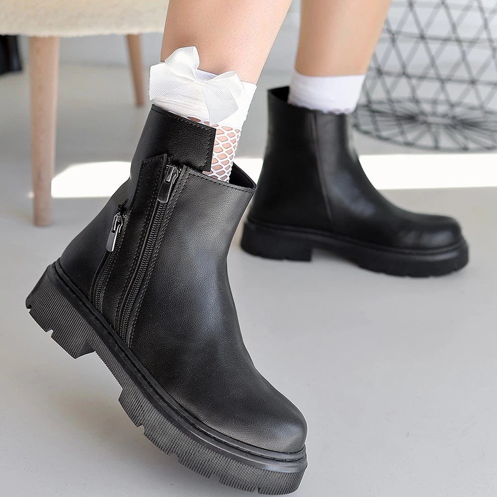 Menta Siyah Cilt Fermuar Aksesuarlı Bot (Numara: 37)