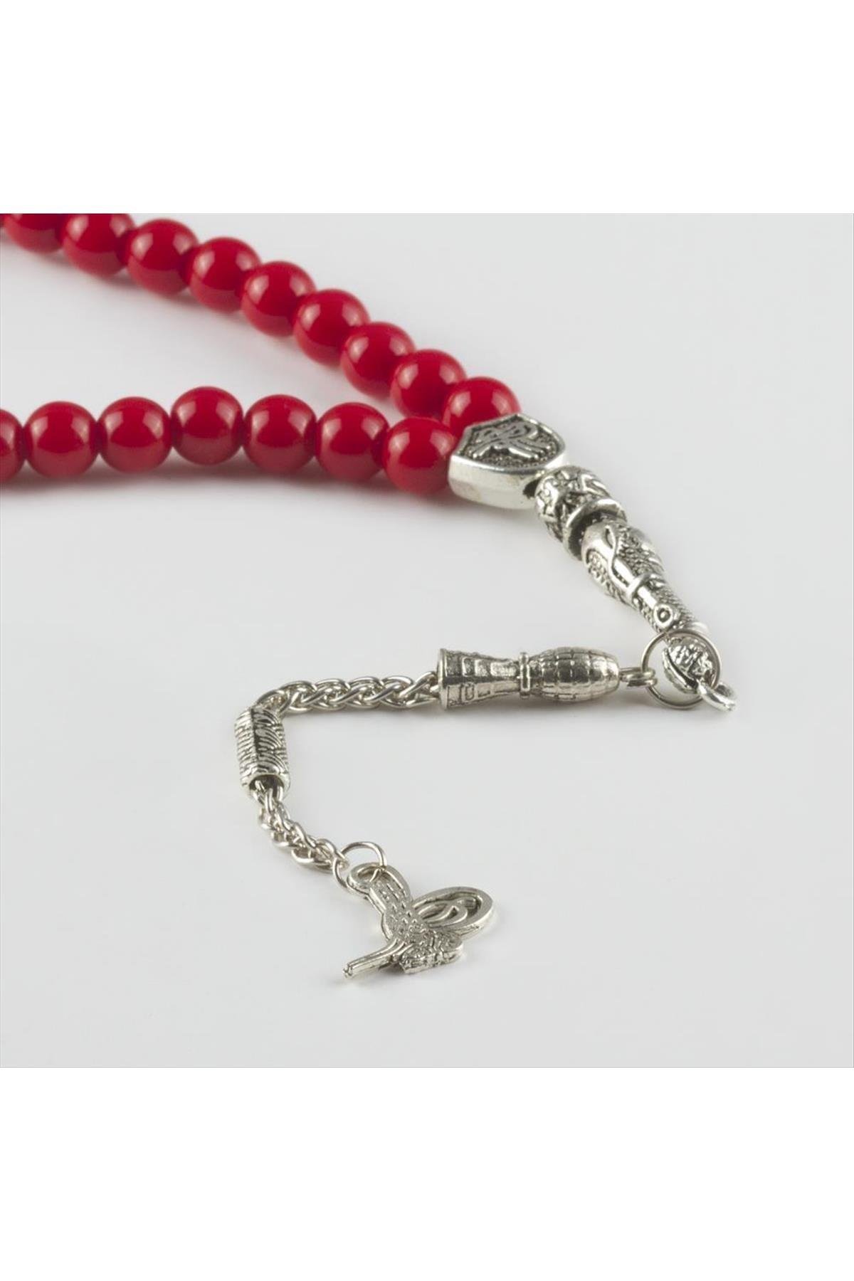 Mercan Doğaltaş Tesbih 8 mm-Gümüş Rengi