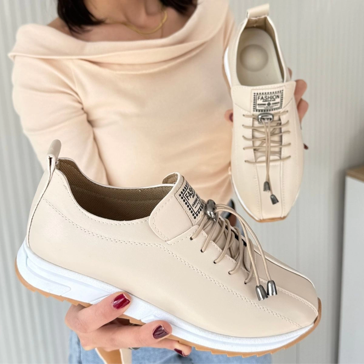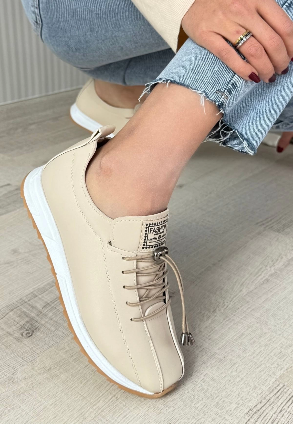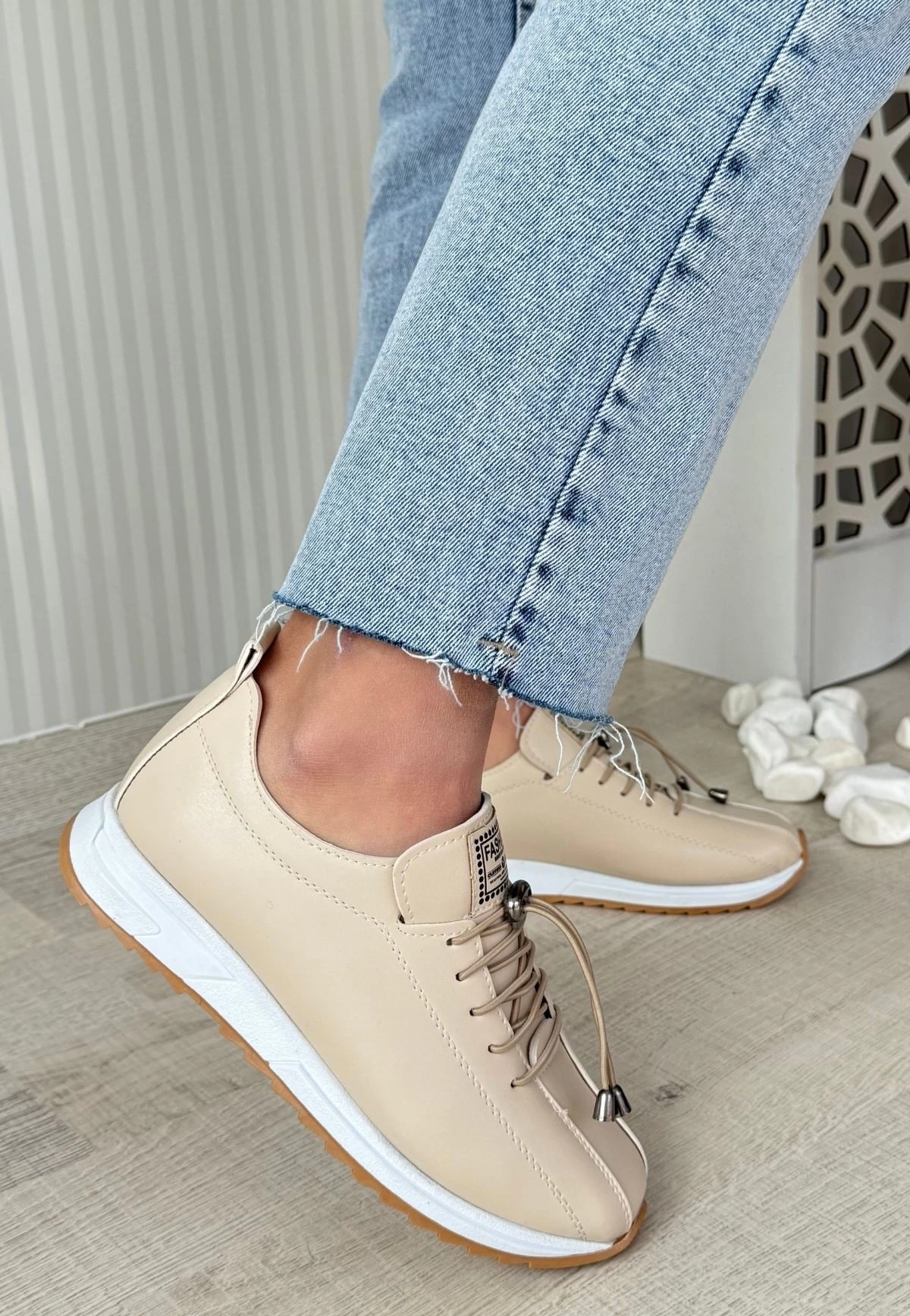 Monya Bej Cilt Bağcıklı Spor Ayakkabı (Numara: 37)
