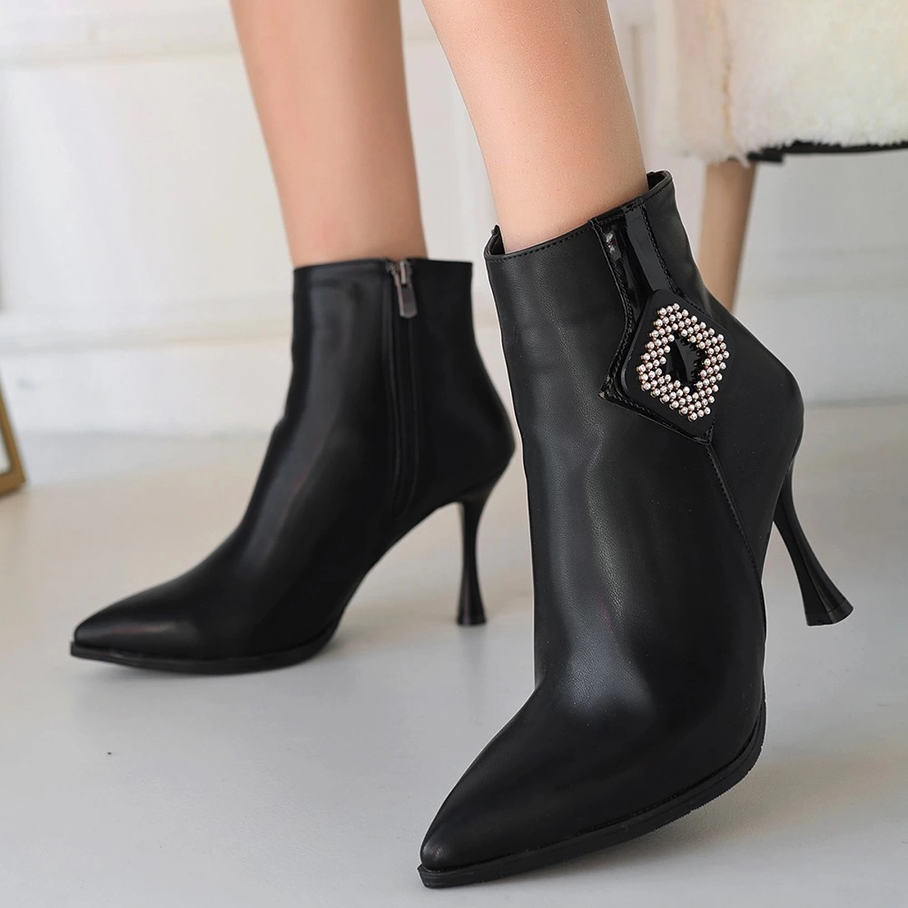 Moose Siyah Cilt Topuklu Bot (Numara: 37)