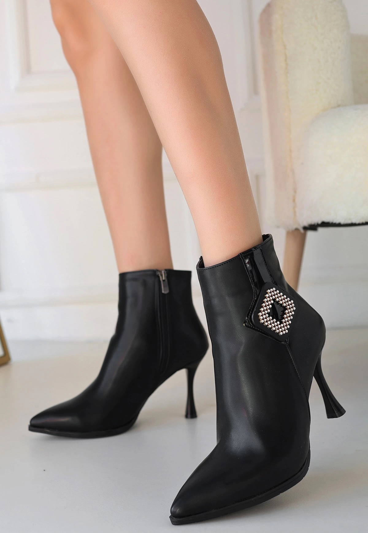 Moose Siyah Cilt Topuklu Bot (Numara: 39)