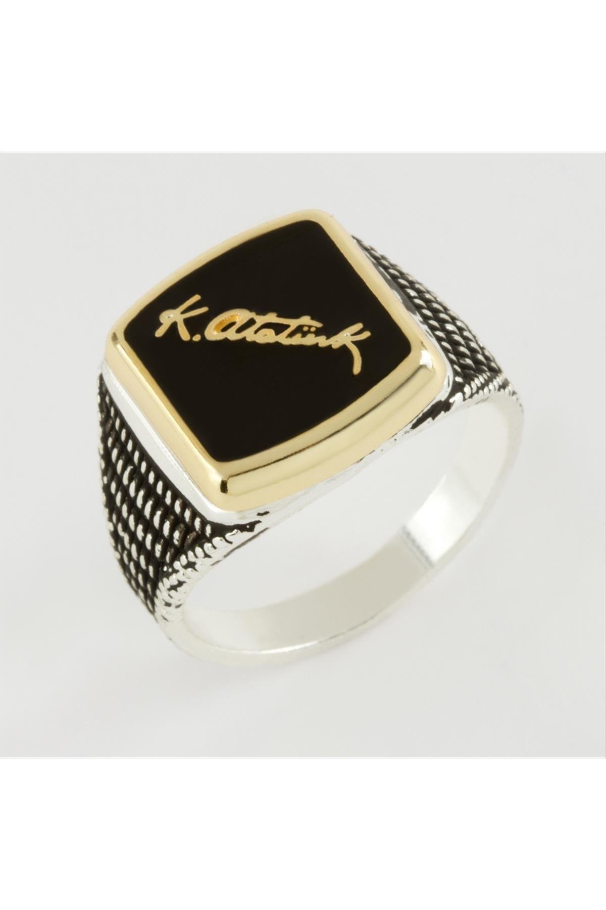 Mustafa Kemal Atatürk İmzalı Metal Erkek Yüzük-Sarı