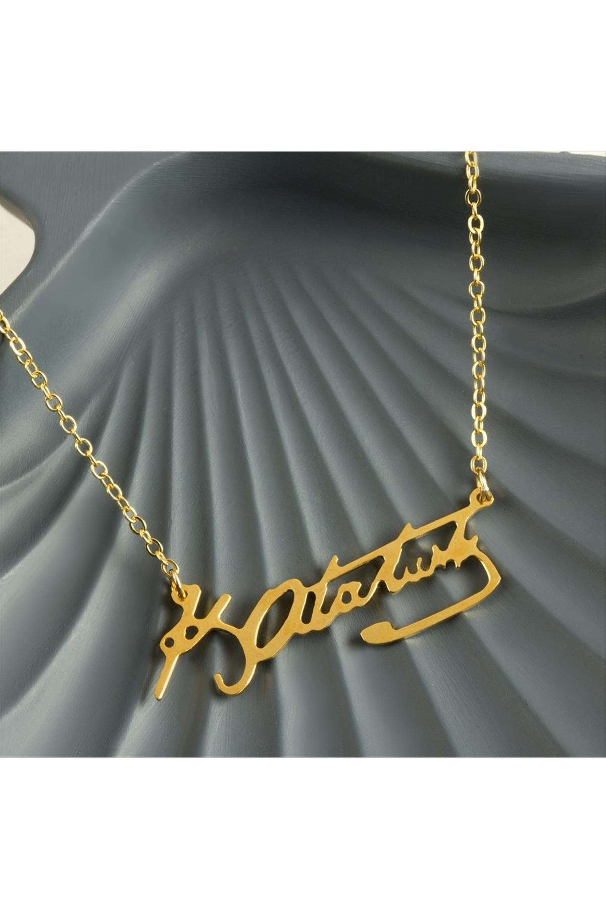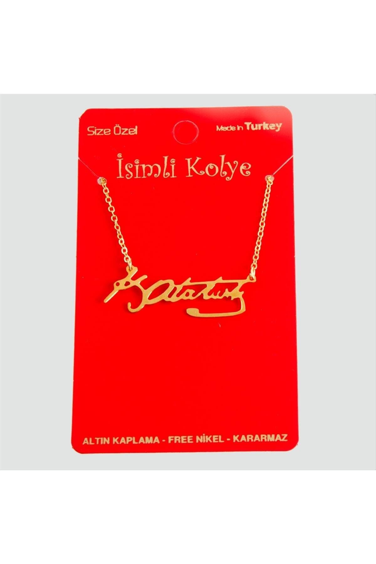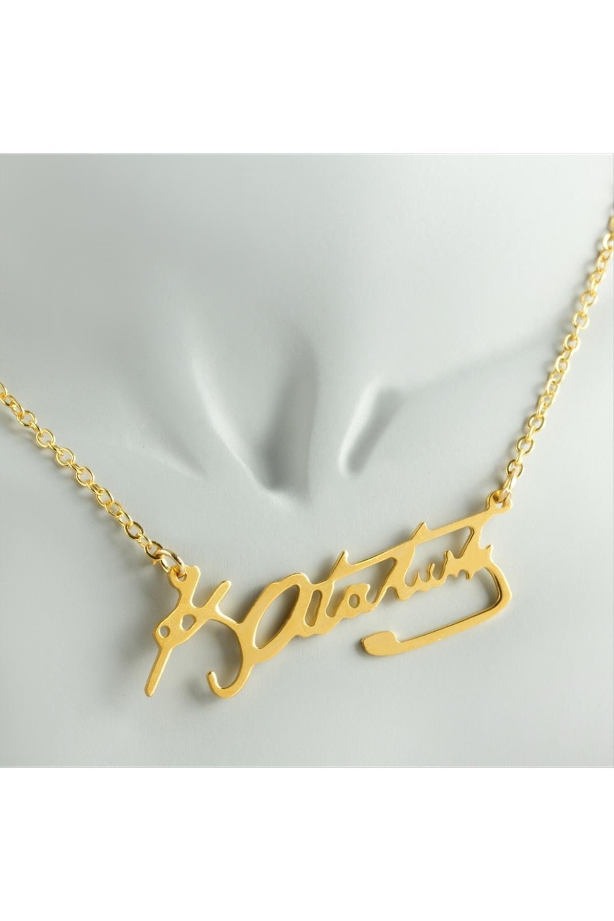 Mustafa Kemal Atatürk İmzalı Uçlu Kolye-Sarı