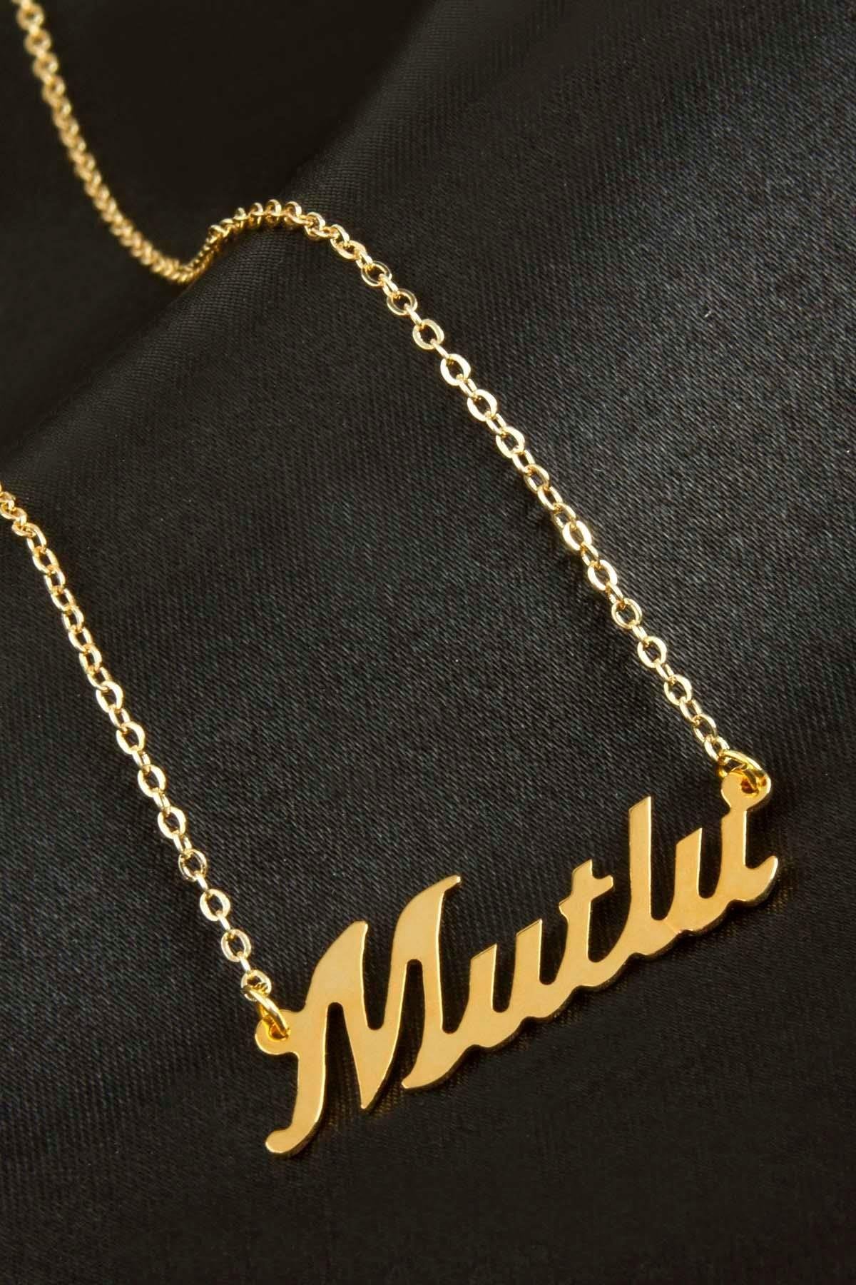 Kolye; Mutlu isimli kolye, ürünlerimiz pirinç kesim olup, altın kaplamadır, kararma yapmaz.