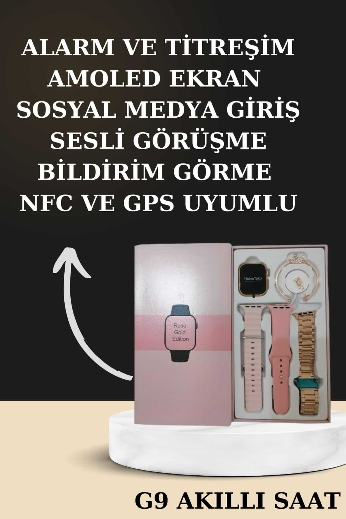 Yeni Nesil Mini Kadın Akıllı Saat, şıklığı ve fonksiyonelliği bir araya getiren tasarımıyla kadınlar için ideal bir seçenek sunuyor. Almanya üretimi ultra dayanıklı model, özel wireless şarj özellikleriyle öne çıkıyor ve Türkçe menüsü sayesinde kullanıcı dostudur. Kutu içeriğinde, mini akıllı saat, 3 farklı kordon, hediye bileklik, wireless şarj kablosu ve kullanım kılavuzu bulunmaktadır. Şık pembe kutusu, hediye olarak tercih edilmesini sağlayan bir özellik taşır. 41 mm kavisli oval kenarlı yeni tasarımı ve 1,70 inç AMOLED ekranı ile yüksek çözünürlükte HD görüntü sağlar.