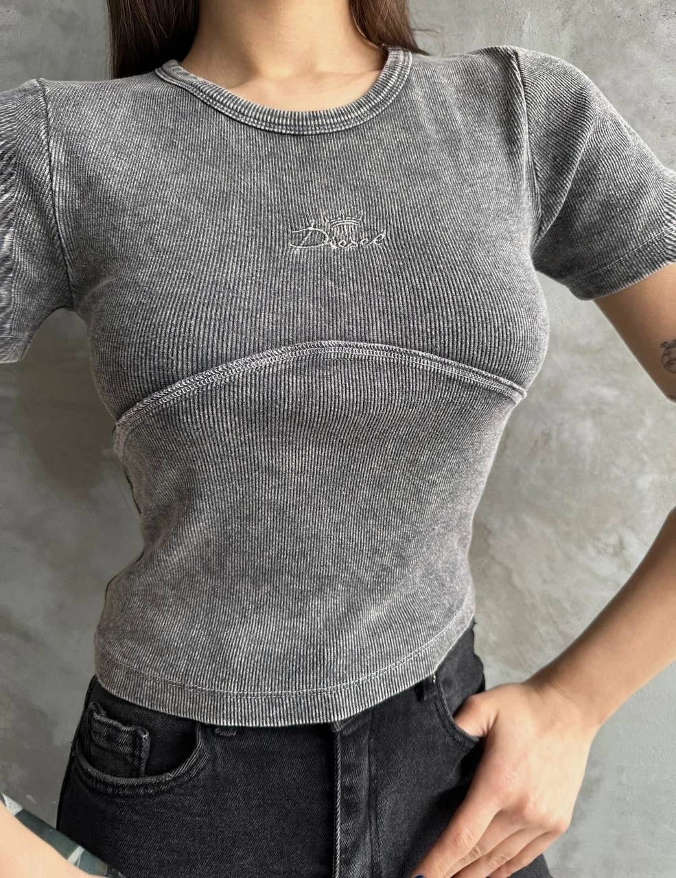 Nakış İşlemeli Asit Yıkamalı Bluz Antrasit (Beden: Standart)