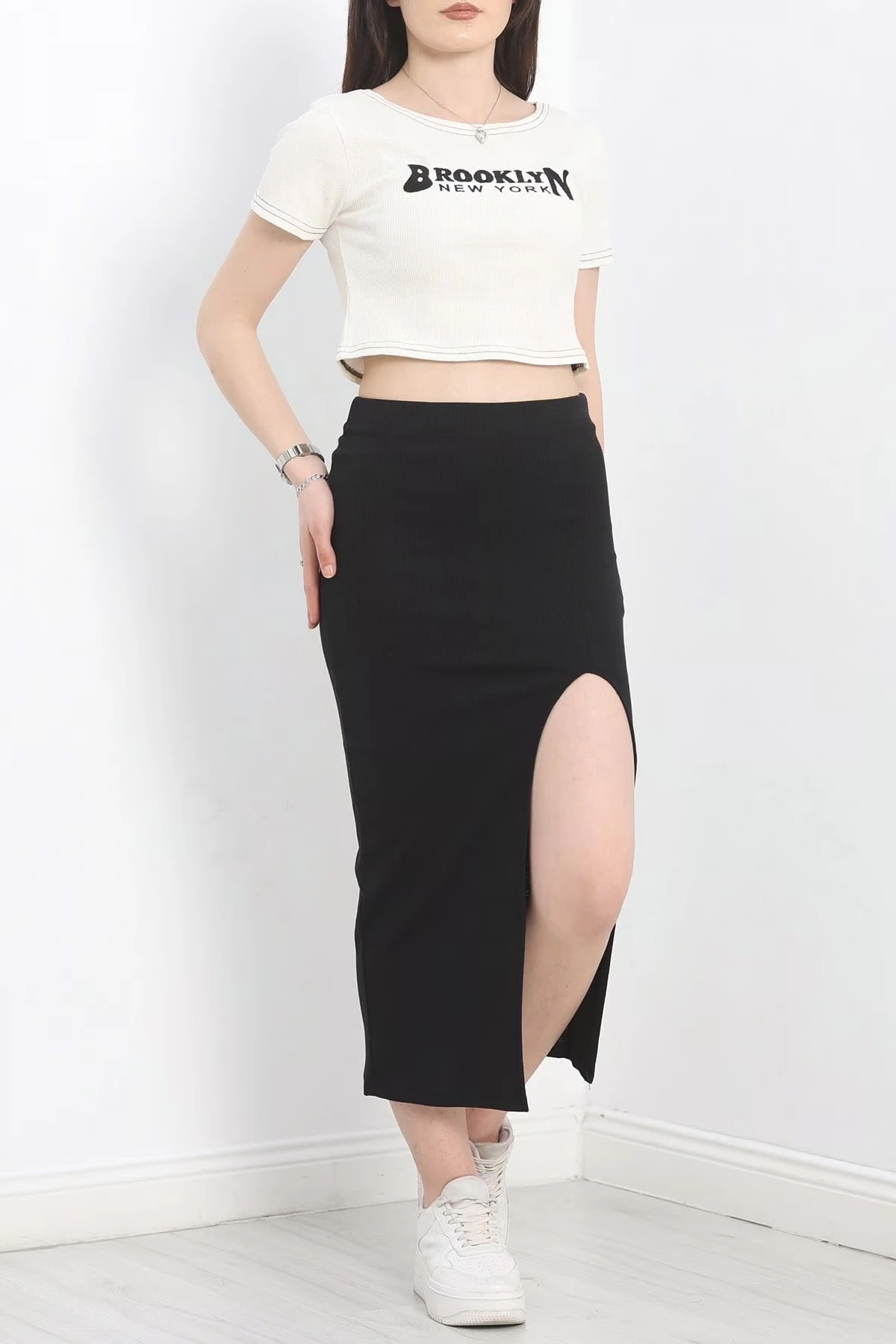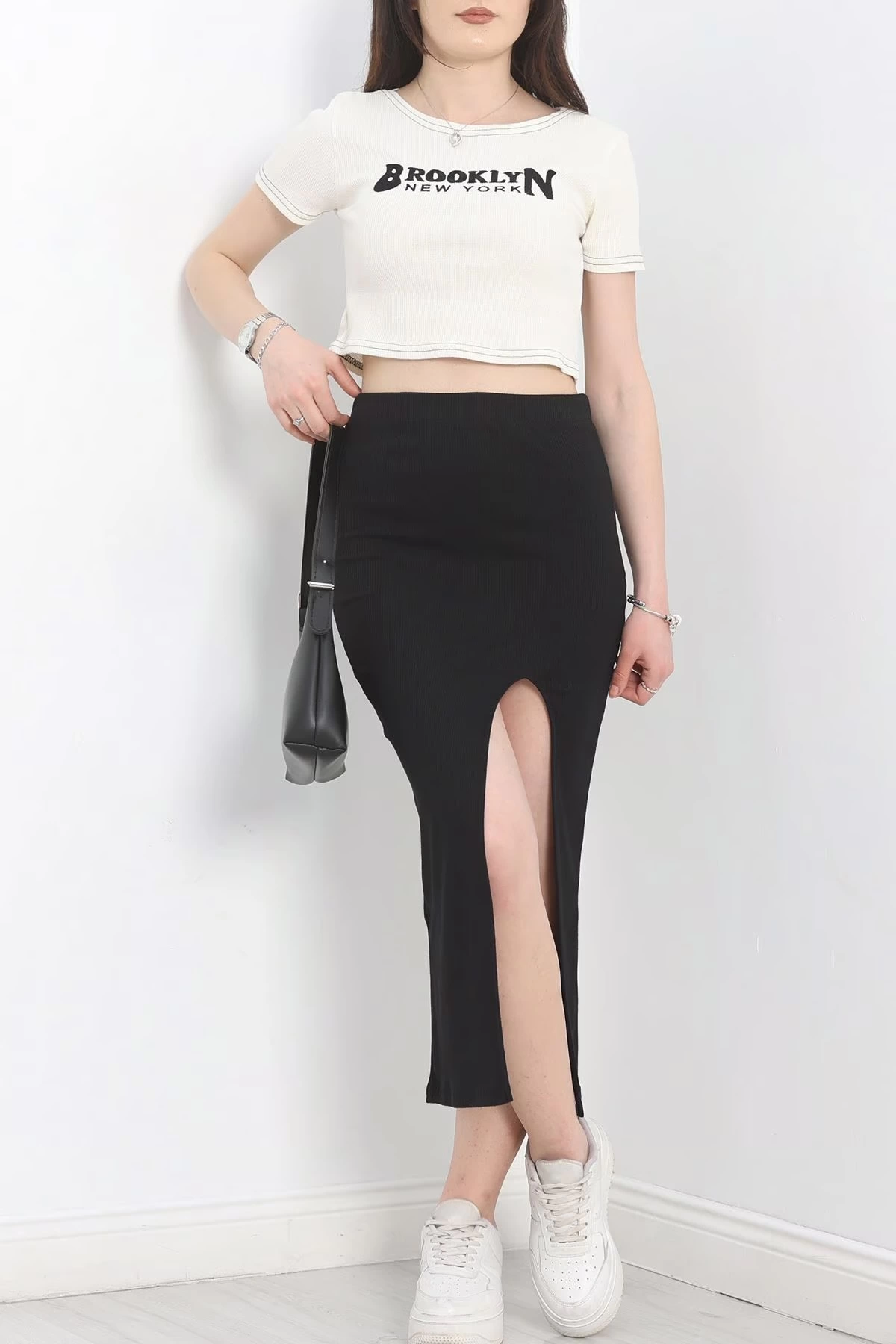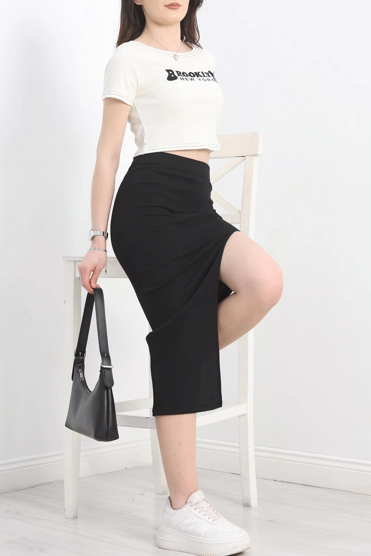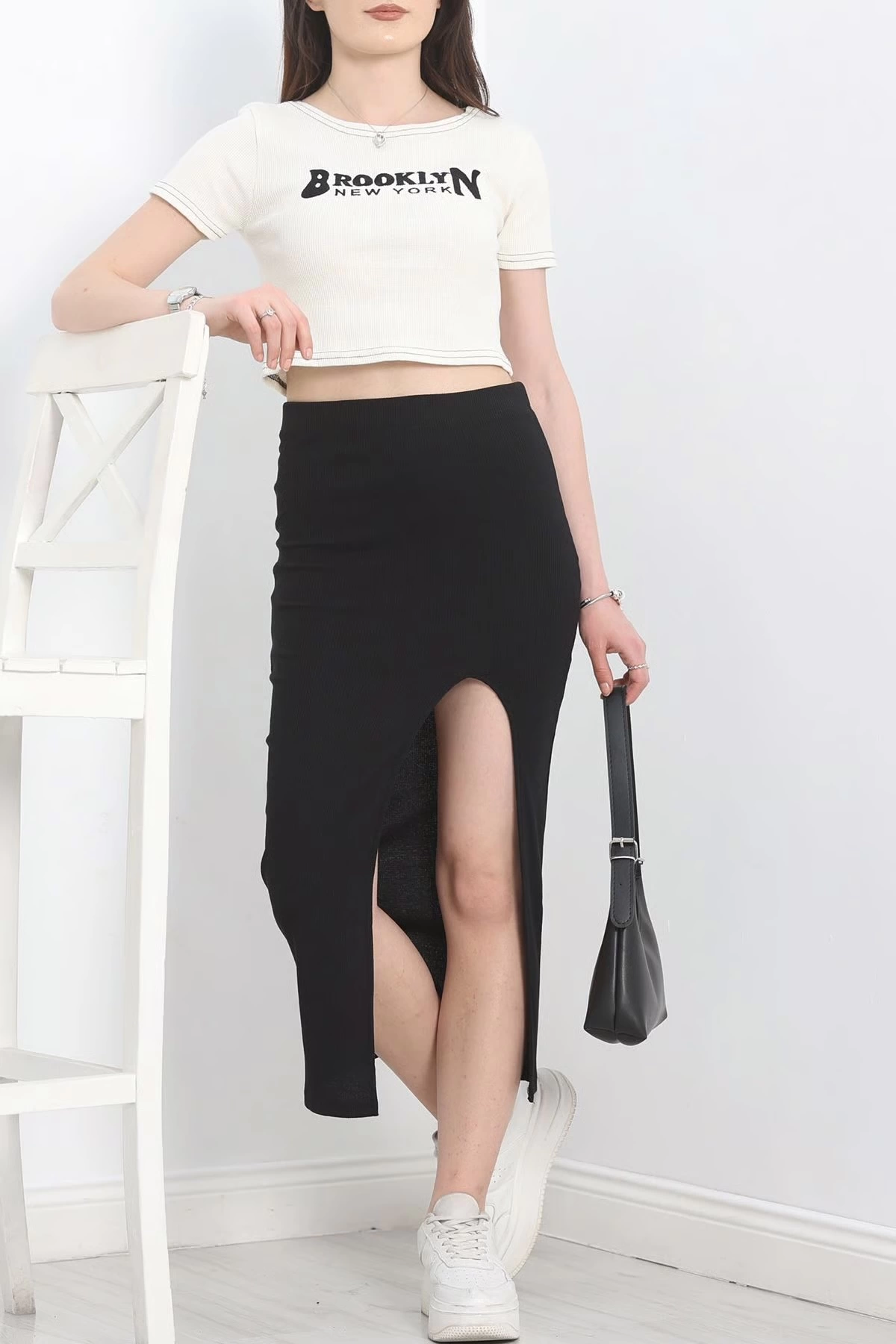 Nakışlı Etekli Takım Siyah Beyaz S3899 Siyan (Beden: S)