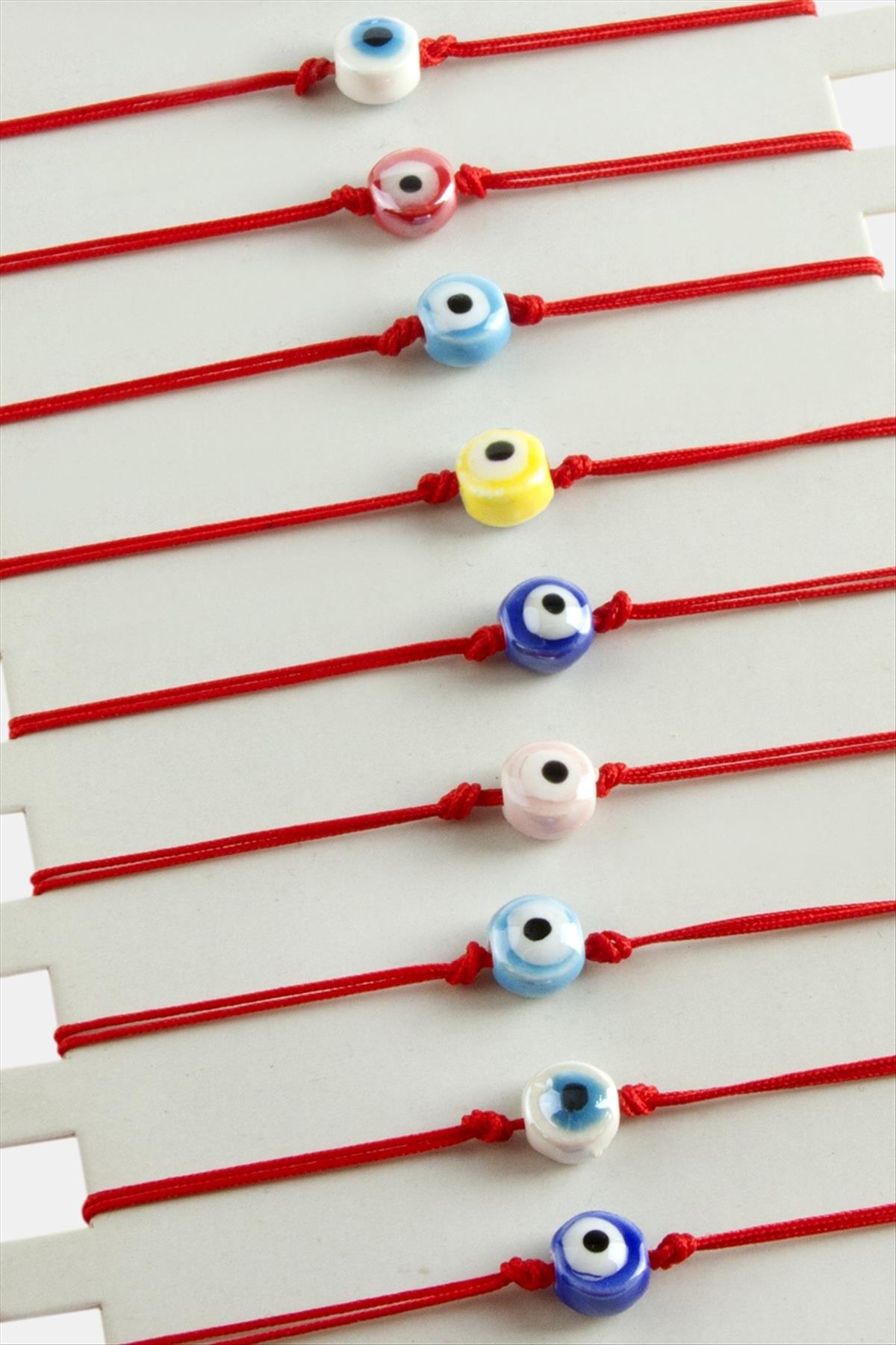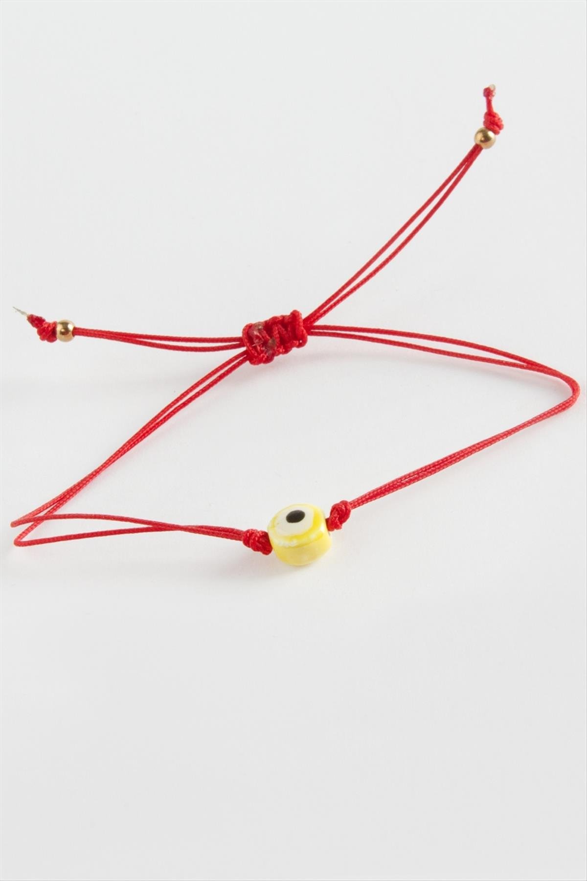Nazar Cam İp Bileklik-Kırmızı