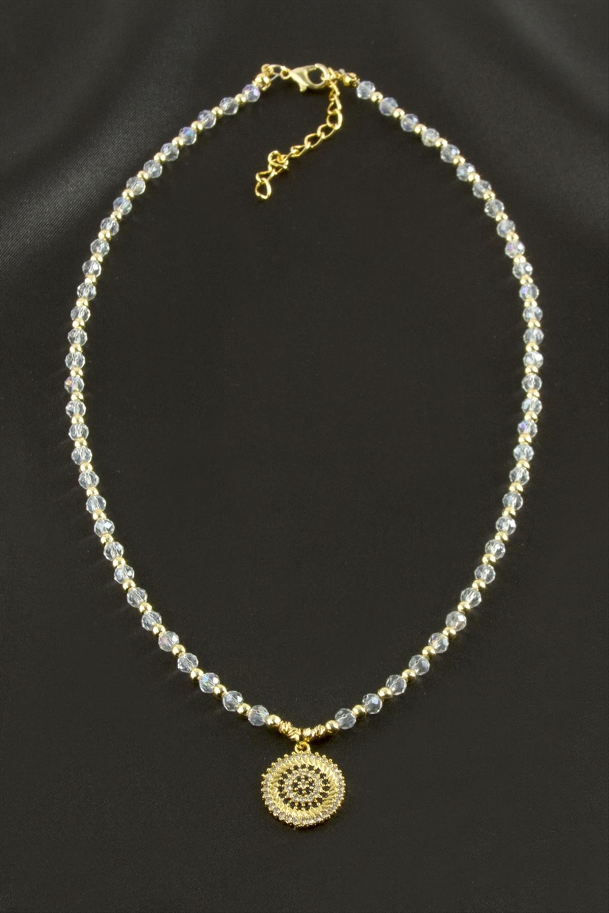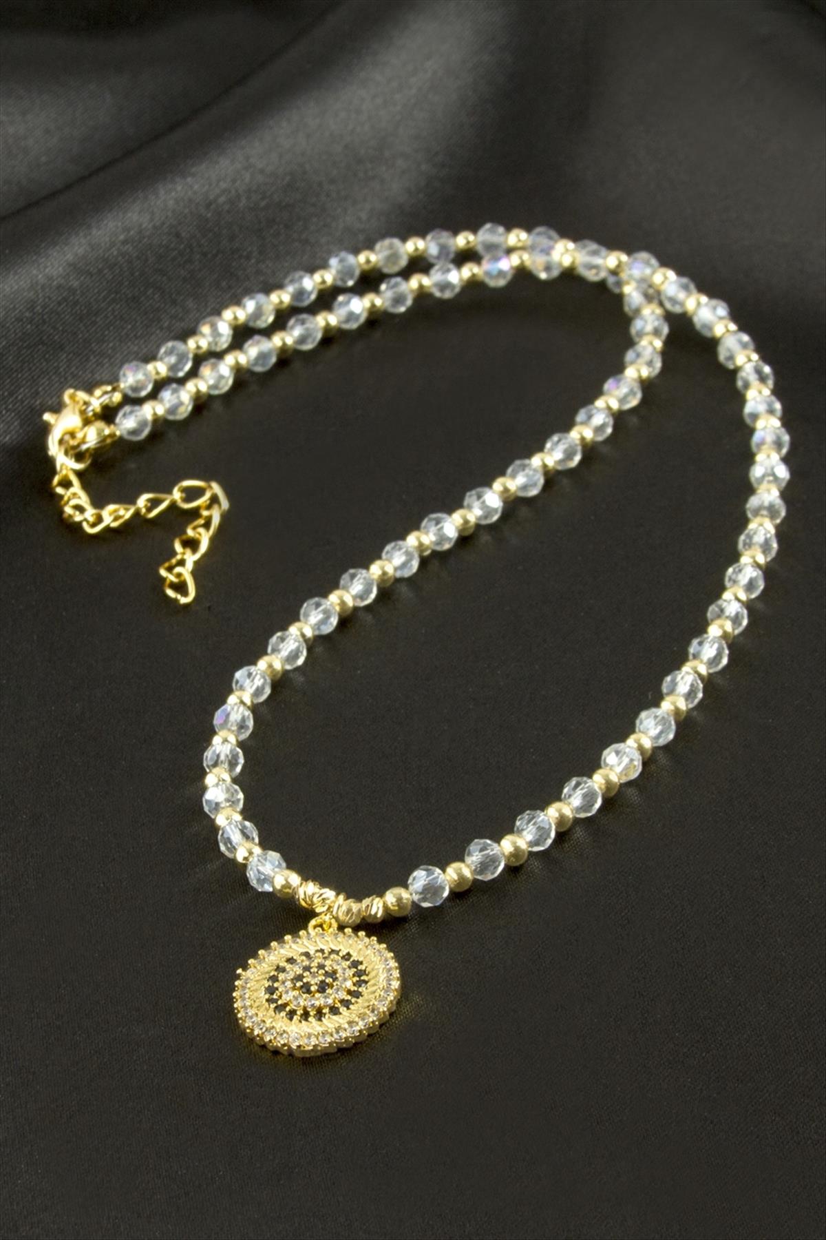 Nazar Zirkon Taşlı Kristal Kolye-Sarı