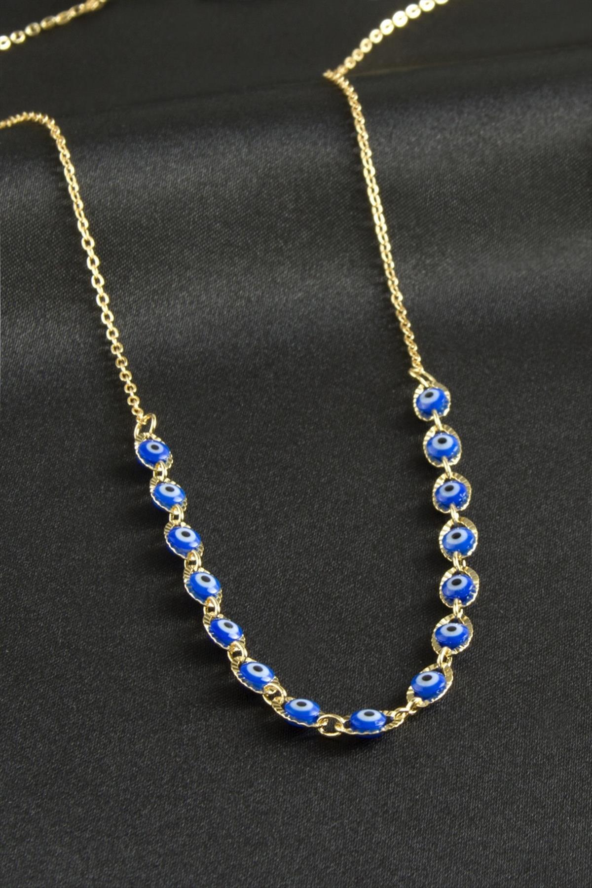 Nazarlı Mineli Kolye-Mavi
