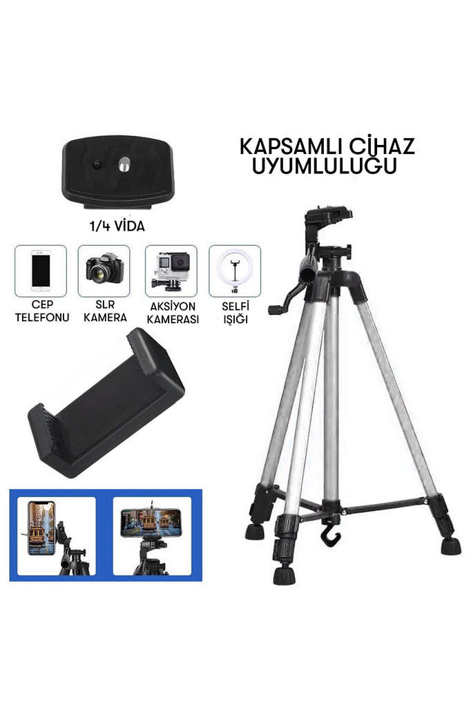 - * 1x 3110 tripod 1x telefon tutucu 1x kese çantası