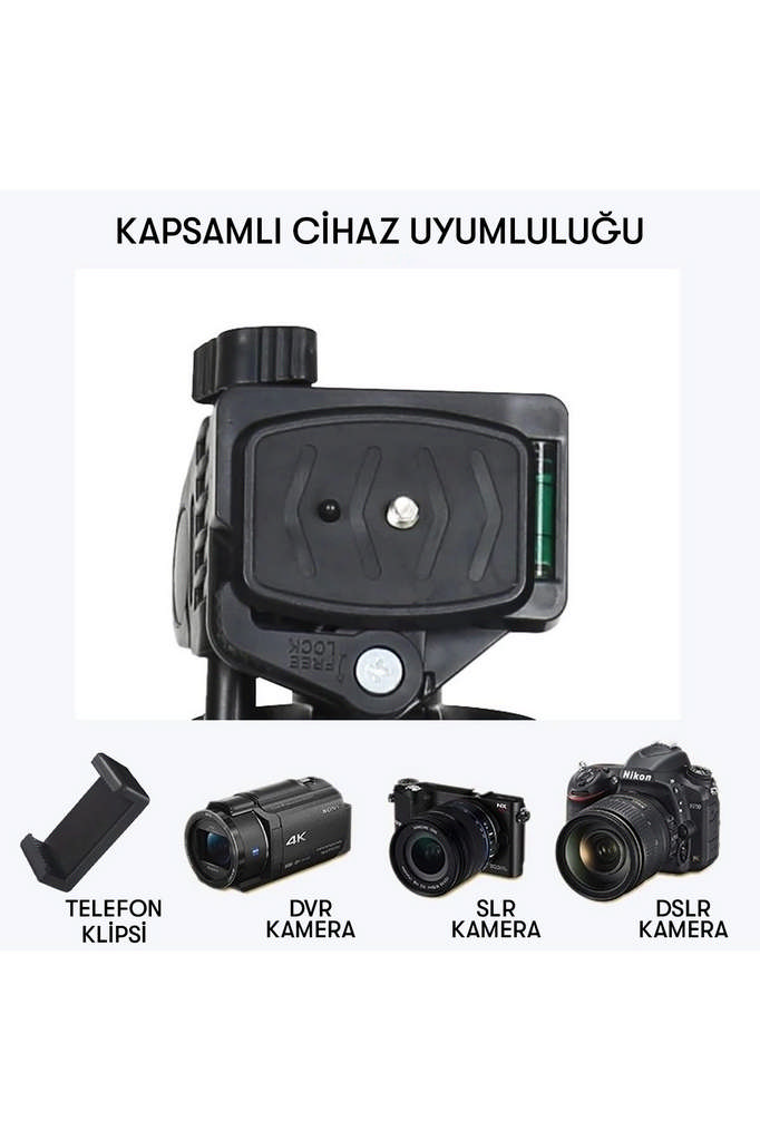 - Altta standart 6 mm dişli deliklere sahip tüm kamera tipleri için uygundur.