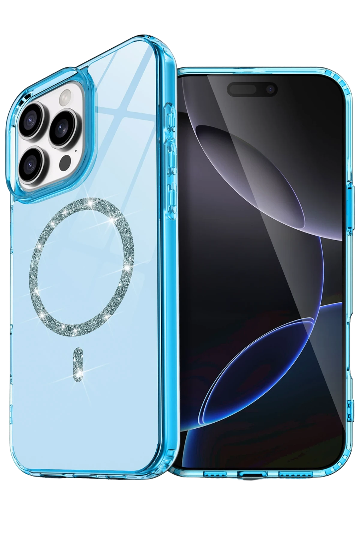 Newface Apple iPhone 14 Pro Max Live Diamond Magsafe Kapak – Mavi