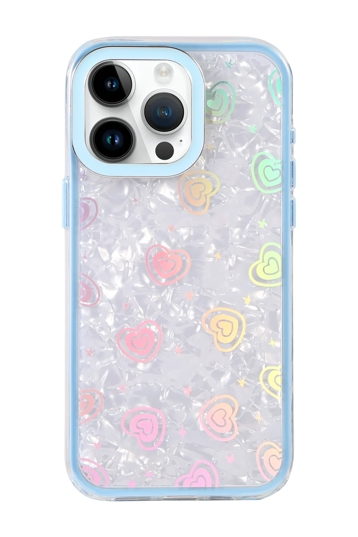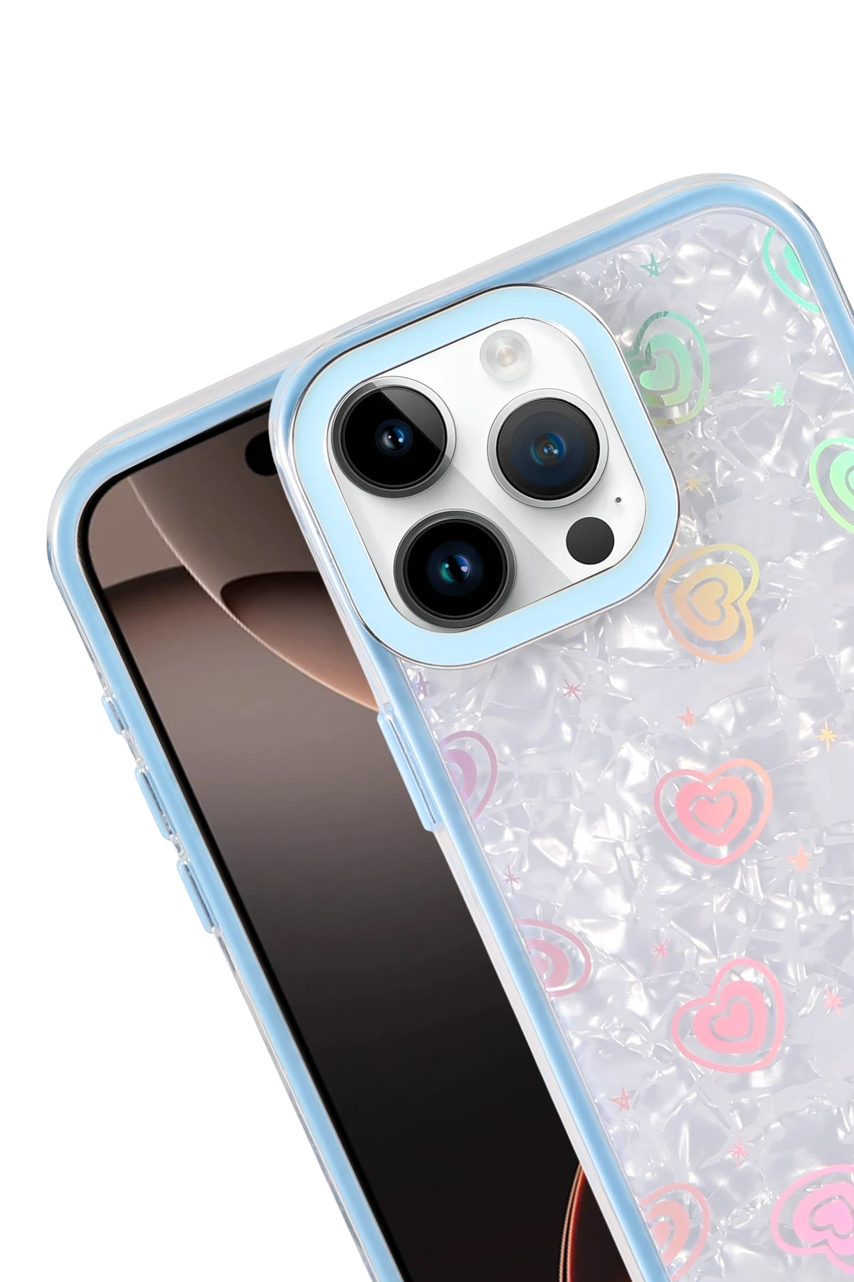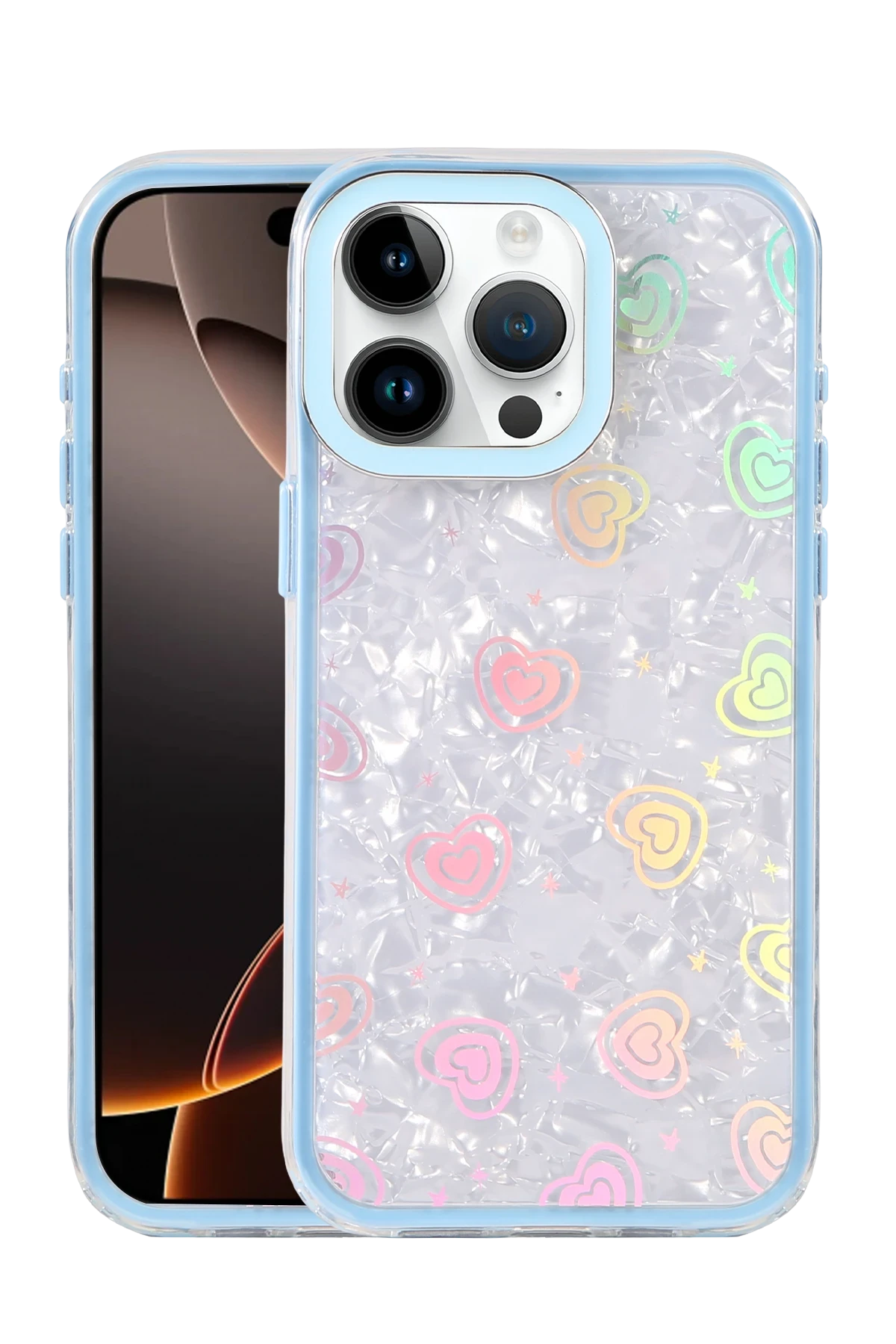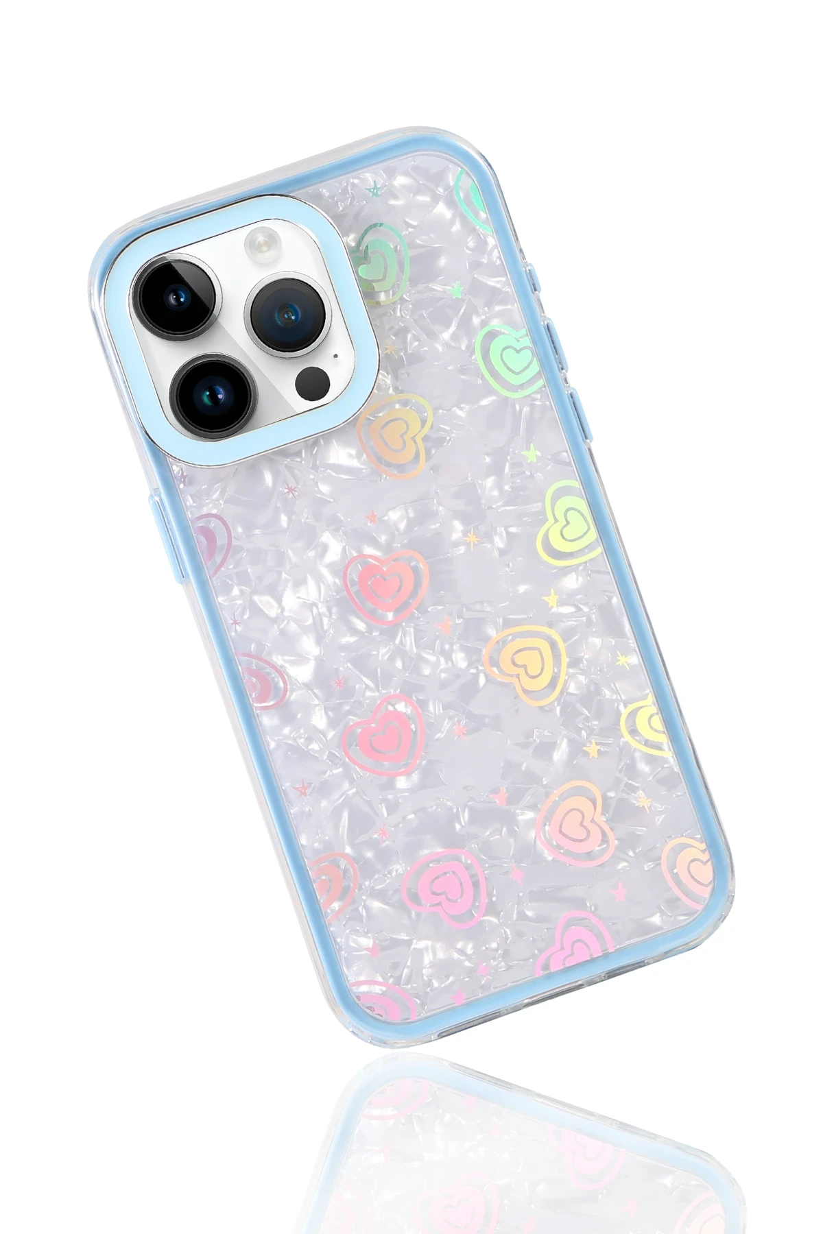 ✅ Kristal şeffaf tasarımı ve renkli kalp desenleriyle şık bir görünüm sunar.