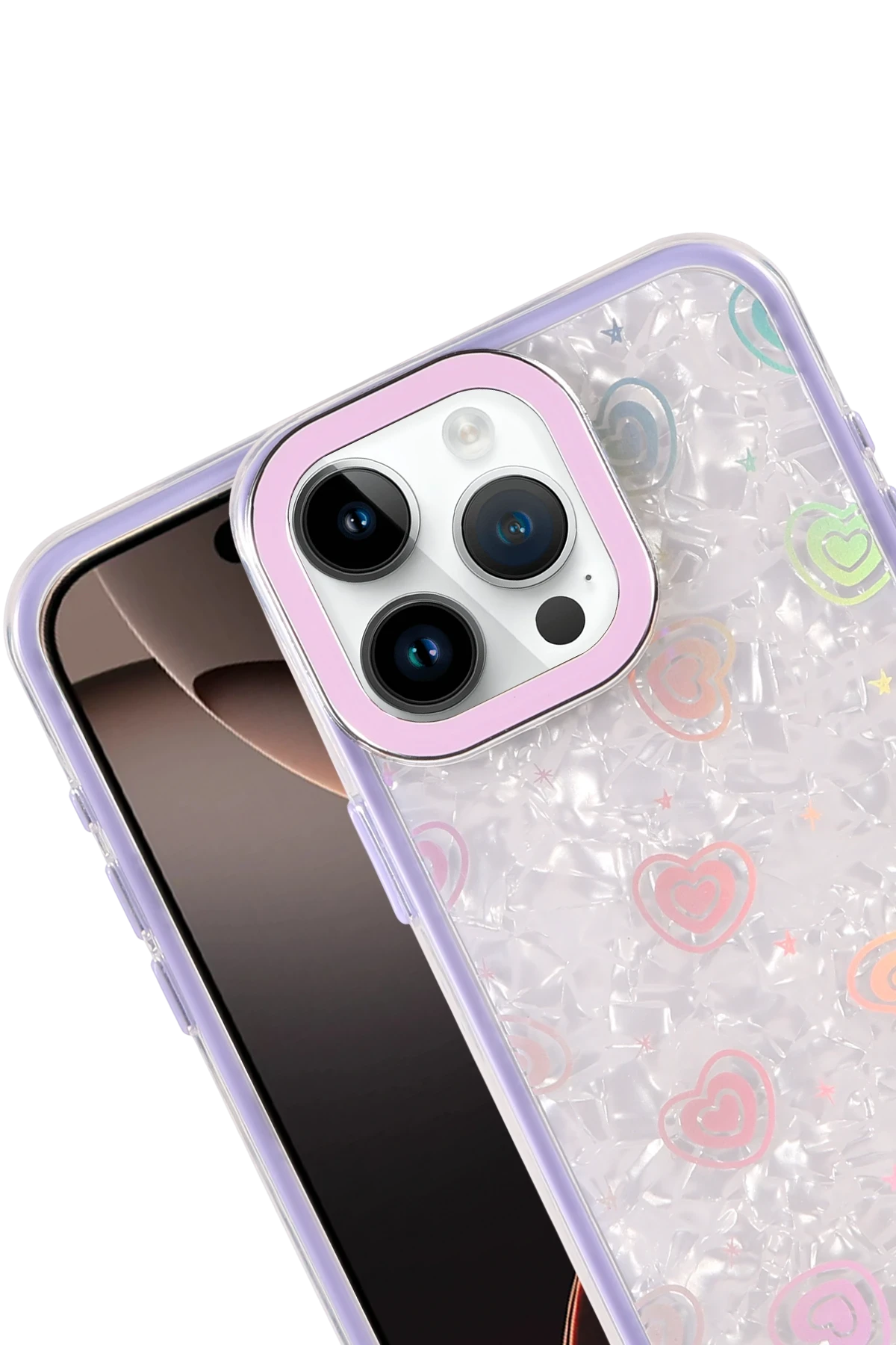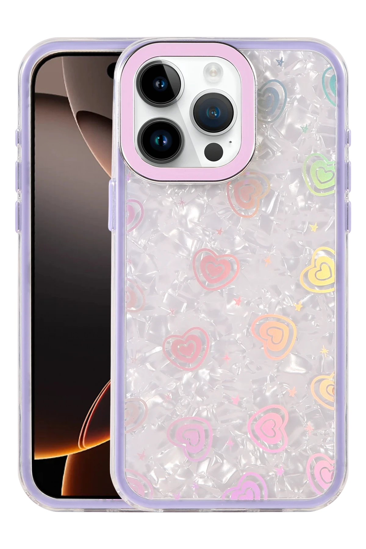 ✅ Kristal şeffaf tasarımı ve renkli kalp desenleriyle şık bir görünüm sunar.