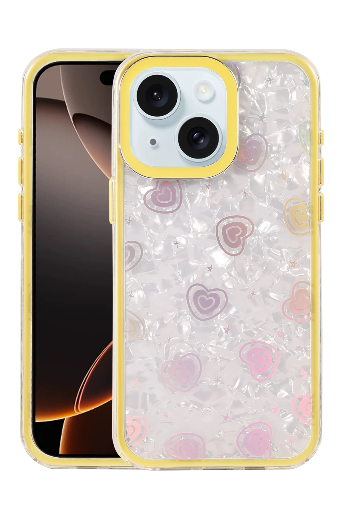 Newface Apple iPhone 15 Lumi Desenli Kapak – Sarı