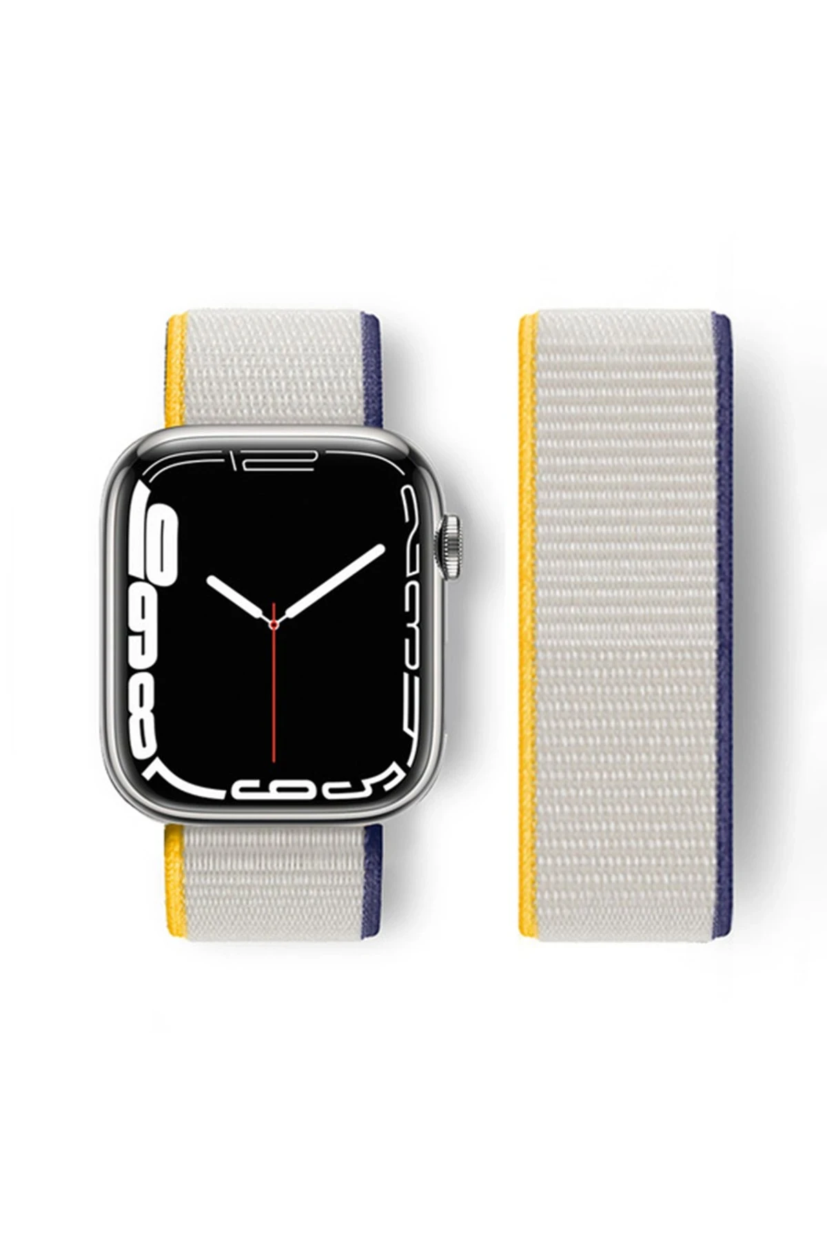 Newface Apple Watch 38mm Hasırlı Cırtcırtlı Kordon – Sarı-Beyaz